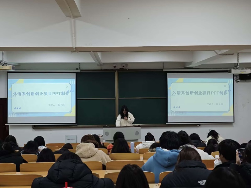 为加强同学们对创新创业项目PPT制作的深入了解,掌握其制作技巧,11月28日晚,外语系于A1阶开展第二期创新创业讲座:PPT制作,讲座邀请电气231翁子越同学主讲,2024级学生参与。
