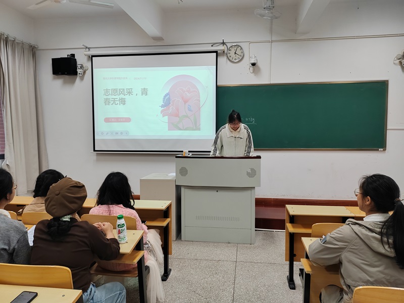 为弘扬志愿精神,鼓励广大青年学生积极投身志愿服务事业,11月9日,外语系紫荆志愿团成功举办了“志愿风采,青春无悔:用行动诠释爱心与责任”主题讲座活动。讲座由志愿团综合部部长英语231史家芹主讲。