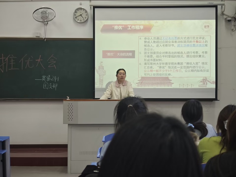 为加强团员青年的思想引领,选拔优秀团员作为党的发展对象,培养新时代青年先锋力量,3月25日-26日,外语系大一各班级开展了团员推优班会。班会由辅导员尹晓娟主持,全体团员参与。