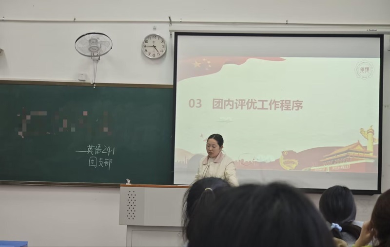 为引导团员思想积极健康发展,公平、合理地选举优秀团员、优秀团干部,3月27日-28日,外语系大一各班级开展了2024年度团内评优班会。班会由辅导员尹晓娟主持,全体团员参与。