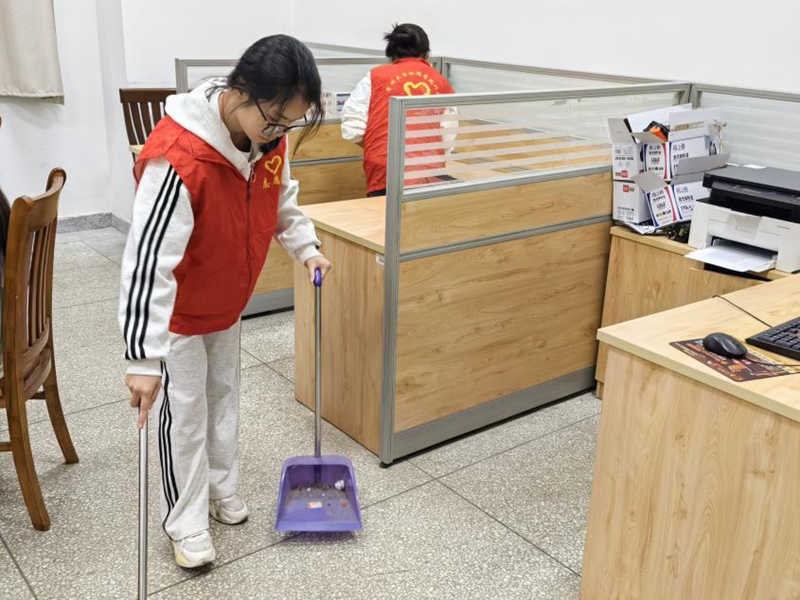 此次志愿内容为清扫B楼一楼各办公室。入党积极分子们身着志愿者服装,分工明确、干劲满满,细致地清理着平日里的卫生盲区。打扫过程中,大家不怕苦、不怕累,清扫过程有条不紊,充分显示出我系入党积极分子的劳动热情。