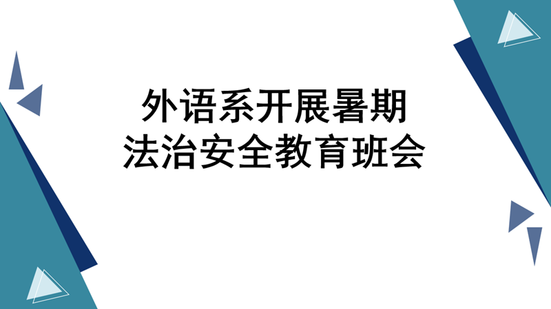 为切实增强学生暑期法治意识和安全防范能力,保障学生度过一个平安、充实的假期,近日,外语系组织各年级以线上形式开展暑期法治安全教育主题班会。