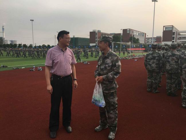 徐建平给教官们送去了一些军训必须品,向教官细致了解了新生的军训进度、军训状态。参训新生们斗志高昂,老师们对同学们的努力给予了鼓励与称赞。相信通过军训的磨练,同学们定能更快锻炼与成长,更好适应大学生活。