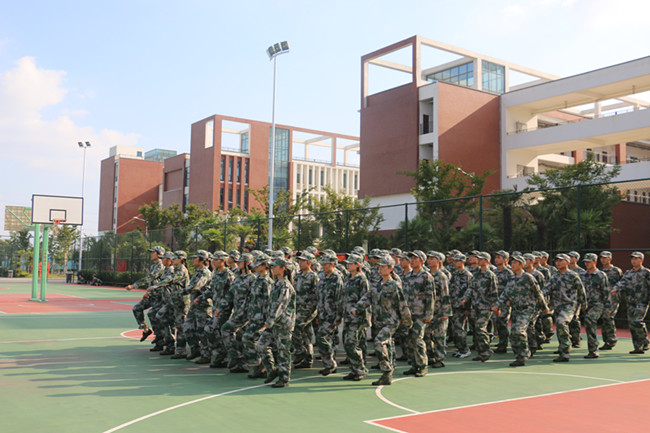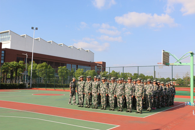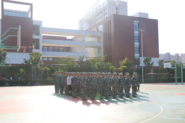 在炎热的操场上,同学们英姿飒爽、意气风发的迎着烈日站着军姿。空地旁,时不时传出同学们训练时响亮的口号声。虽然同学们脸上挂满了汗珠,但却都不喊累不喊苦,以军人的毅力坚持下去。