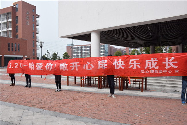 为提高大学生心理健康发展的自主意识,3月23日中午,院心理自助中心举办了“3.20心理健康周”横幅签名活动。