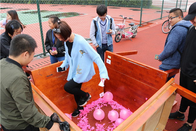 活动以“释放压力,快乐生活”为主题,由“放飞心情”、“踩爆气球”、“背对背拥抱”、“指压板高抬腿”四个项目组成,具有娱乐性以及协作性。活动现场,同学们积极参与,尽情疏泄自己的情绪,有效释放了自身压力。