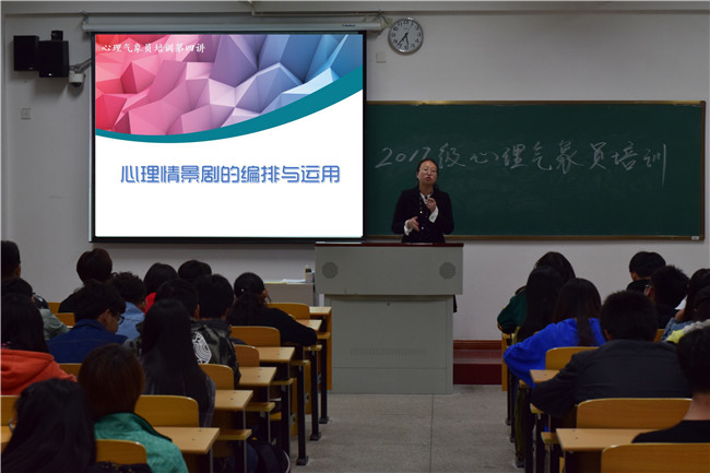 11月15日晚,院心理自助中心在A101开展了第四次心理气象员培训活动,培训由马文喆老师主讲,17级全体心理气象员参加了此次培训活动。