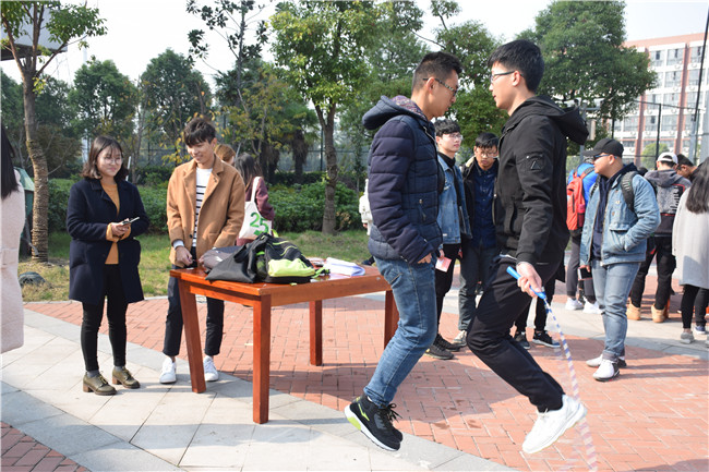 本次活动以默契为主题,包括四个项目:双人跳绳、配合我、默契大挑战、寻找熟悉的他(她)。四项活动既考验了参与者的身体素质,也考验了参与者之间的默契程度。同学们凭借超强的默契,相互配合,闯过一道又一道难关,增进了同学间的情谊。