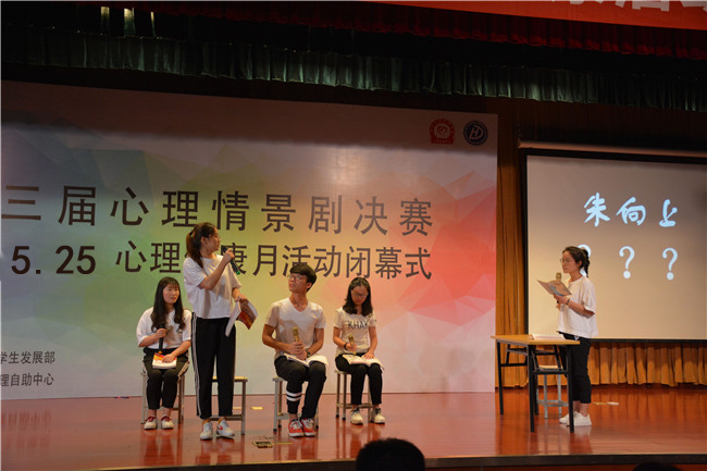 5月30日晚,院心理自助中心主办的第三届心理情景剧决赛暨5.25心理健康月活动闭幕式在报告厅顺利开展。院心理自助中心指导老师马文喆、机械与化学工程系辅导员陈星宇、经济管理系辅导员侯瑶、信息工程系辅导员陈杰、艺术系系辅导员刘媛及建筑与环境工程系辅导员杨仑等500余名师生参加了此次活动。