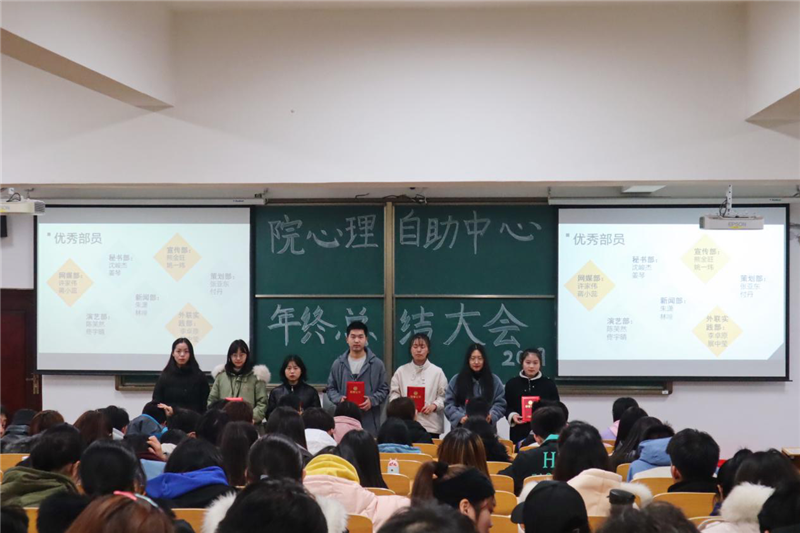 12月26日中午,院心理自助中心2019年终总结大会在A1阶顺利举行。院心理自助中心指导老师马文喆及院心理自助中心全体成员参加了此次大会,会议由主席助理朱文玲主持。