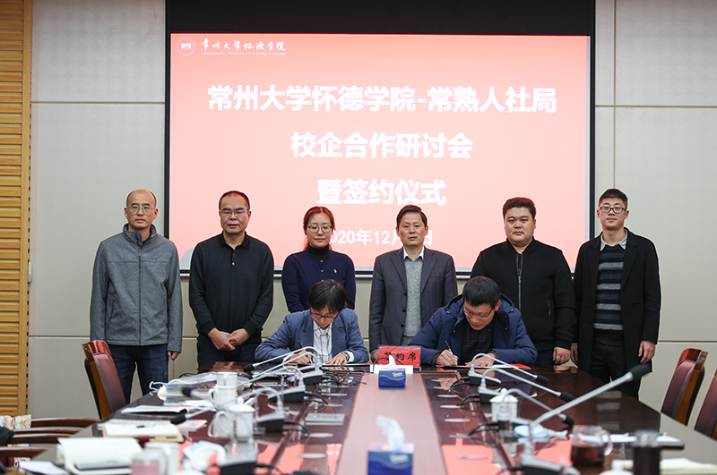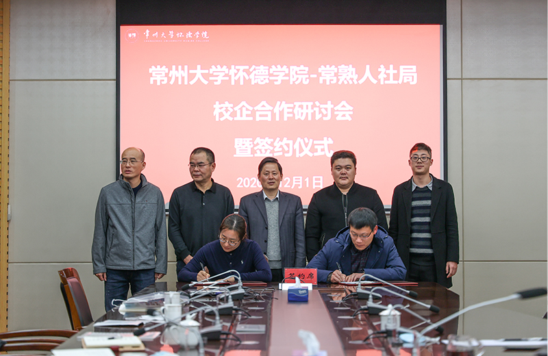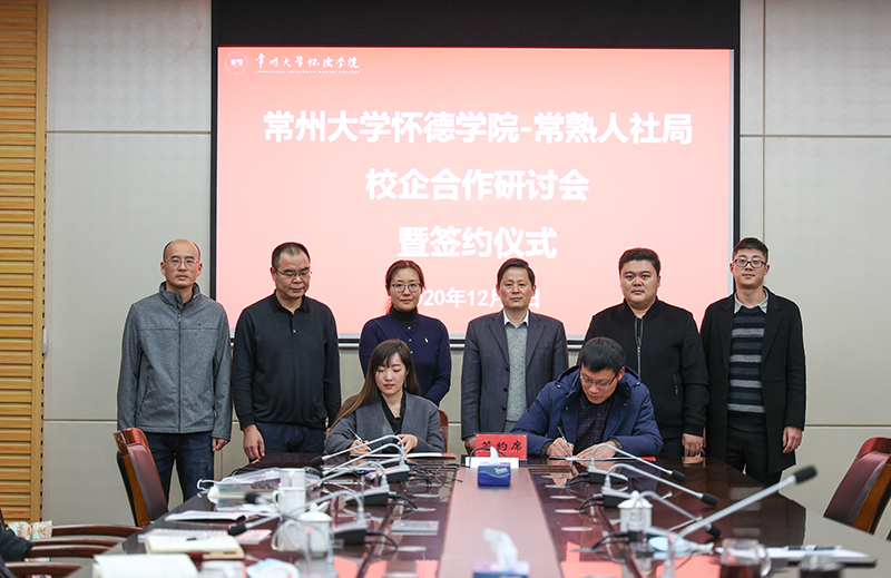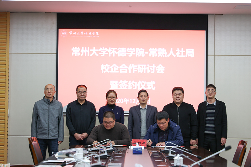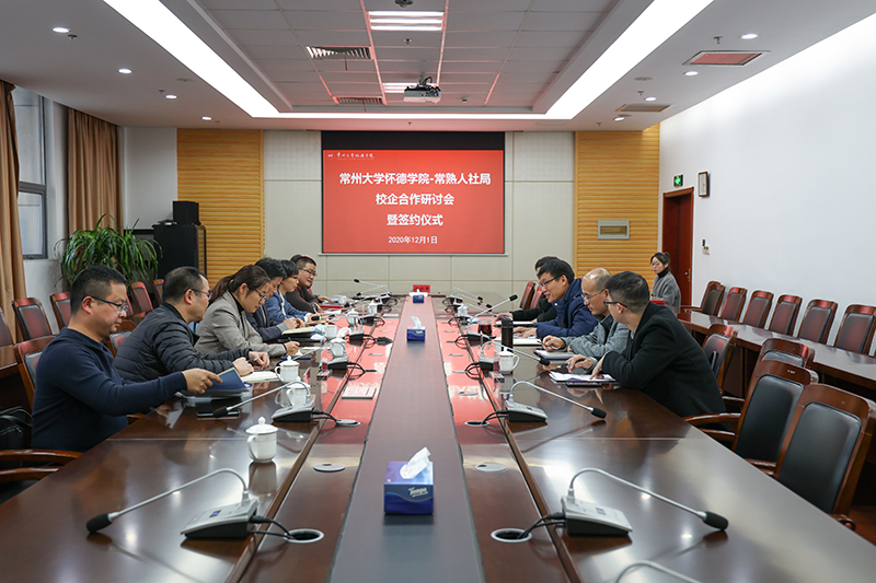 为强化校地校企合作,拓宽毕业生就业渠道,扎实推进2021届毕业生就业工作。12月1日下午,我院在怀德楼第二会议室举办“常州大学怀德学院-常熟人社局”校地校企合作工作研讨会暨签约仪式。常熟市人社局党委副书记、副局长沈建新,常熟市人才办副主任、海虞镇党委副书记崔文龙,常熟市人力资源管理服务中心主任陶一青,副主任王军彪,市场与人才科科长朱少东,怀德学院党委副书记、副院长刘茂灿,常熟市3家企业代表出席会议,学生发展部相关人员参加了会议。会议由刘茂灿主持。