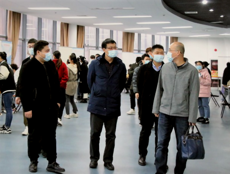会前,刘茂灿代表学院热情接待了沈建新一行,并一同走访了招聘会现场。
