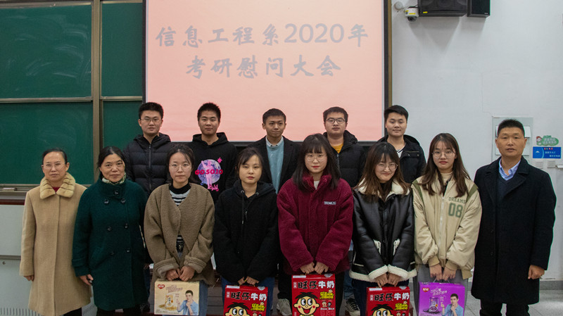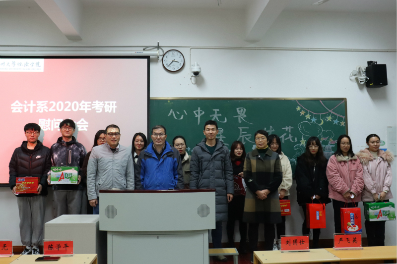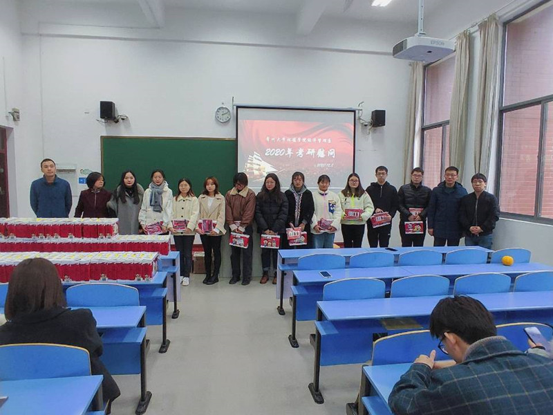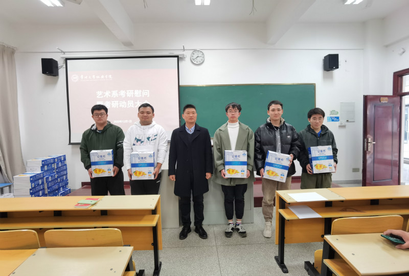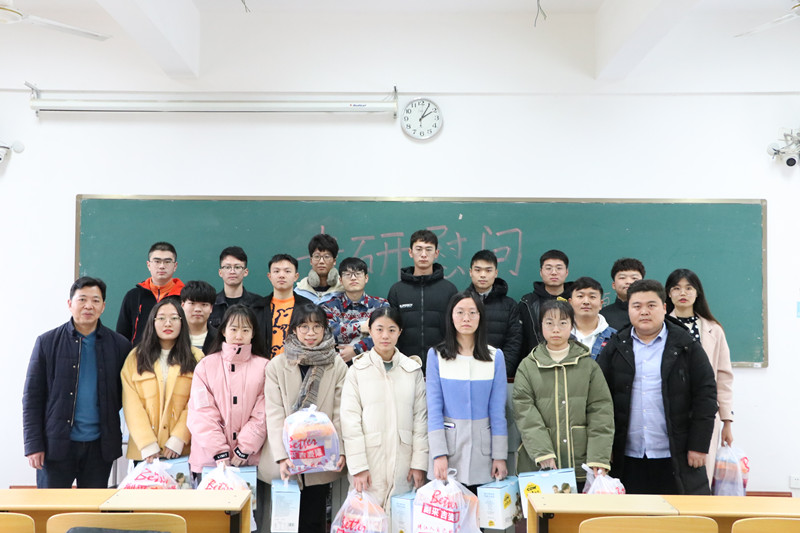 与会院领导详细了解考研学生的学习、生活情况,鼓励大家要迎难而上、勤下苦功,最终一定能拨云见日,实现目标。同时也希望大家放下压力的包袱,安心学习,坚持到底。刘茂灿指出考研路也是人生路,你们有怎样的坚持便有怎样的收获,让坚持成为你们人生奋斗的习惯,那么你们人生最亮丽的底色也会永葆青春。刘育猛鼓励考研学子无论做什么事,三分钟热度是无法触摸到成功的大门,只有一步一个坚持,一步一个脚印才有可能到达成功的彼岸。王峰希望考研学生们能做到三个不辜负,不辜负自己青春韶华的时光,不辜负学院尽心全力的培养,不辜负远方亲人饱含深情的期望。刘国仕强调考研要有行动力的具体实践活动,求学虽然没有捷径可言,但是考研成功的人无疑是推开一扇与众不同的人生大门,这门内的精彩只有走进去的人才能明白其中的美妙,相信大家可以领略这样的美妙。马庆功要求考研学子要不负韶华不负亲,以梦为马度流年。考研学子的青春韶华正是奋斗最好的年华,如此催人奋进的时代需要的是怀德学子们将拼搏进取的精神与梦想融入到大时代的浪潮之中。最后,各位领导将精心准备的考研慰问品发放给同学们,表达学院对考研学子们的关怀。