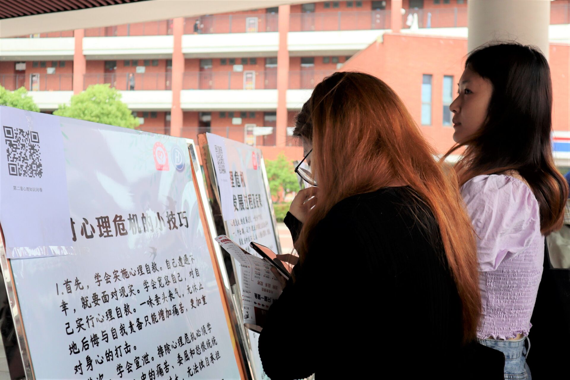 本次巡展活动围绕“心理危机的识别与干预”这一主题展开,内容涵盖了心理危机的内涵、影响因素、特征与种类、发展过程和后果、应对心理危机的技巧及案例分析六个方面。学习后,同学们线下扫码答题检验学习成果,现场氛围和乐融融。