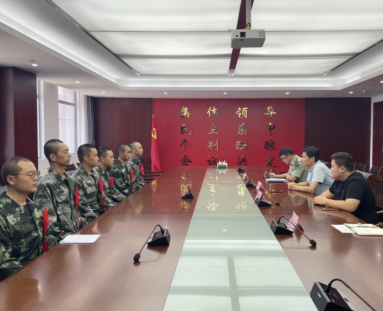 9月23日下午,人武部召开2021年秋季征兵交流会,院长助理、人民武装部部长刘国仕、学生发展部副部长张明军对新兵学生代表进行交流慰问。斜桥镇人民武装部部长朱跃祥主持会议。