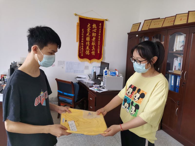 衣服暖人心,夏日送清凉,各系辅导员亲手将市政府发放的省运会纪念体恤送至困难手中,详细询问学生近期的学习、生活情况,关心心理健康,提醒学生做好疫情期间的个人防护,遇到困难及时反映,学院会倾力帮助。受助学生深受感动,表达了对学院关爱的感激。
