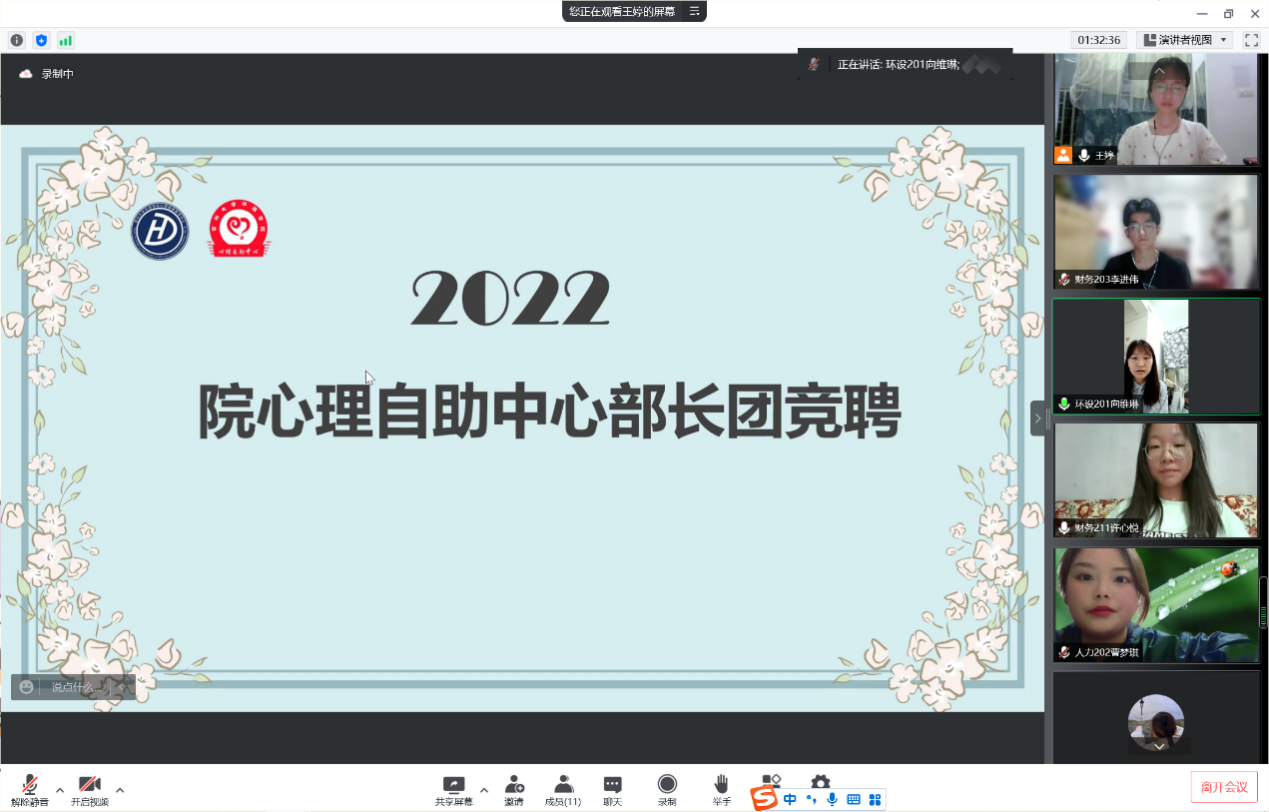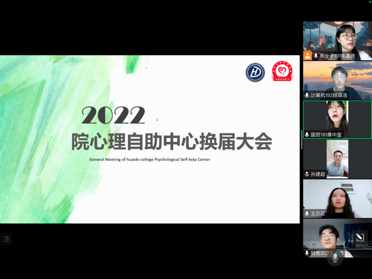 为促进我院心理自助中心更好地发展,5月22日晚和5月26日下午,院心理自助中心分别进行主席团和部长团的换届工作。6月2日晚,院心理自助中心进行了新老干部交接会议。本年度院心理自助中心的干部换届工作及新老干部交接大会均通过腾讯会议平台在线上进行。