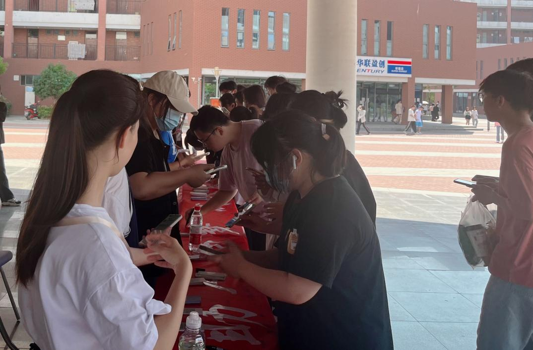 10月2日中午,同学们顶着高温纷纷来到二食堂门口,工作人员认真地为大家讲解学院的资助政策,针对同学们提出的一些困惑进行现场答疑。工作人员将提前准备好的书签发放给学生,引导学生加入资助政策宣传群,积极拓宽学生了解政策的途径,本次活动获得了同学们很高的评价。