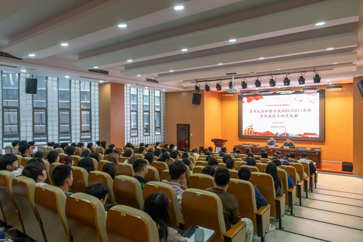 为全面贯彻我院“勇担责任,追求卓越”的精神,促进我院精神文明建设,创建一个积极向上的良好学习氛围,我院于11月8日在图书馆报告厅召开22-23-1学期学风建设月动员大会。院党委副书记、副院长刘国仕出席本次大会并讲话,学生工作处处长张明军主持会议,各系党总支副书记、新生辅导员及学生骨干参加大会。