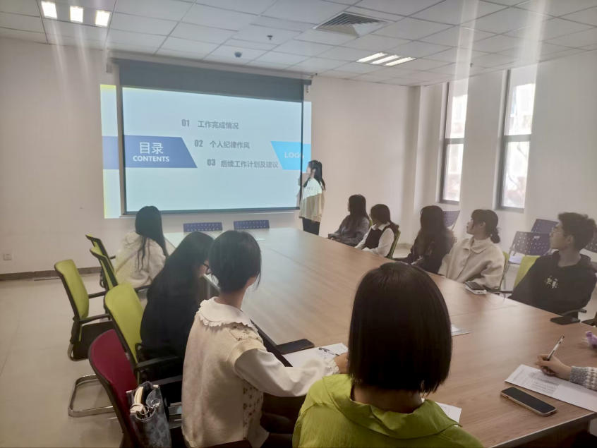 为更好地总结2022-2023-1学期院大学生自律中心的各项工作,全面准确地掌握院自律的工作情况,提高责任意识、服务意识和大局意识,加强对工作人员的管理,进一步促进工作的开展,3月10日,院自律主席团及部长团在大学生活动中心召开了述职评议大会。本次述职评议大会由院自律中心指导老师张晓燕,院青协主席孙芙雨、大学生安全协会主席卞曼嫚、院心助主席王婷组成了评议组进行评议。