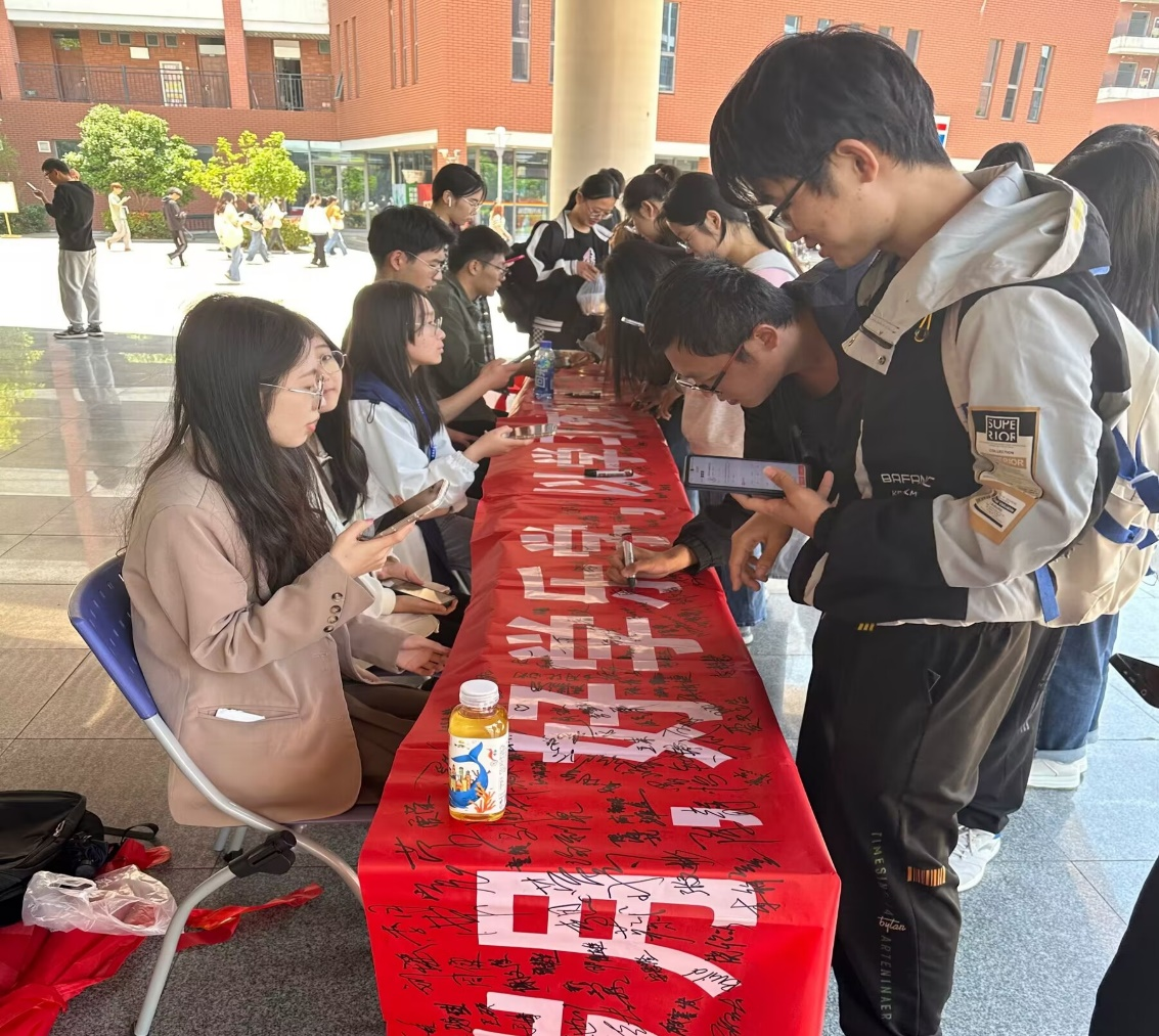 活动现场气氛活跃,同学们热情高涨,积极踊跃的参与其中。在工作人员们的耐心指导下,大家有序的在以“勤学善思,以知识浇灌岁月,好学乐学,以学习充实青春”为主题的宣传横幅上郑重的签下了自己的名字,积极响应学风建设。