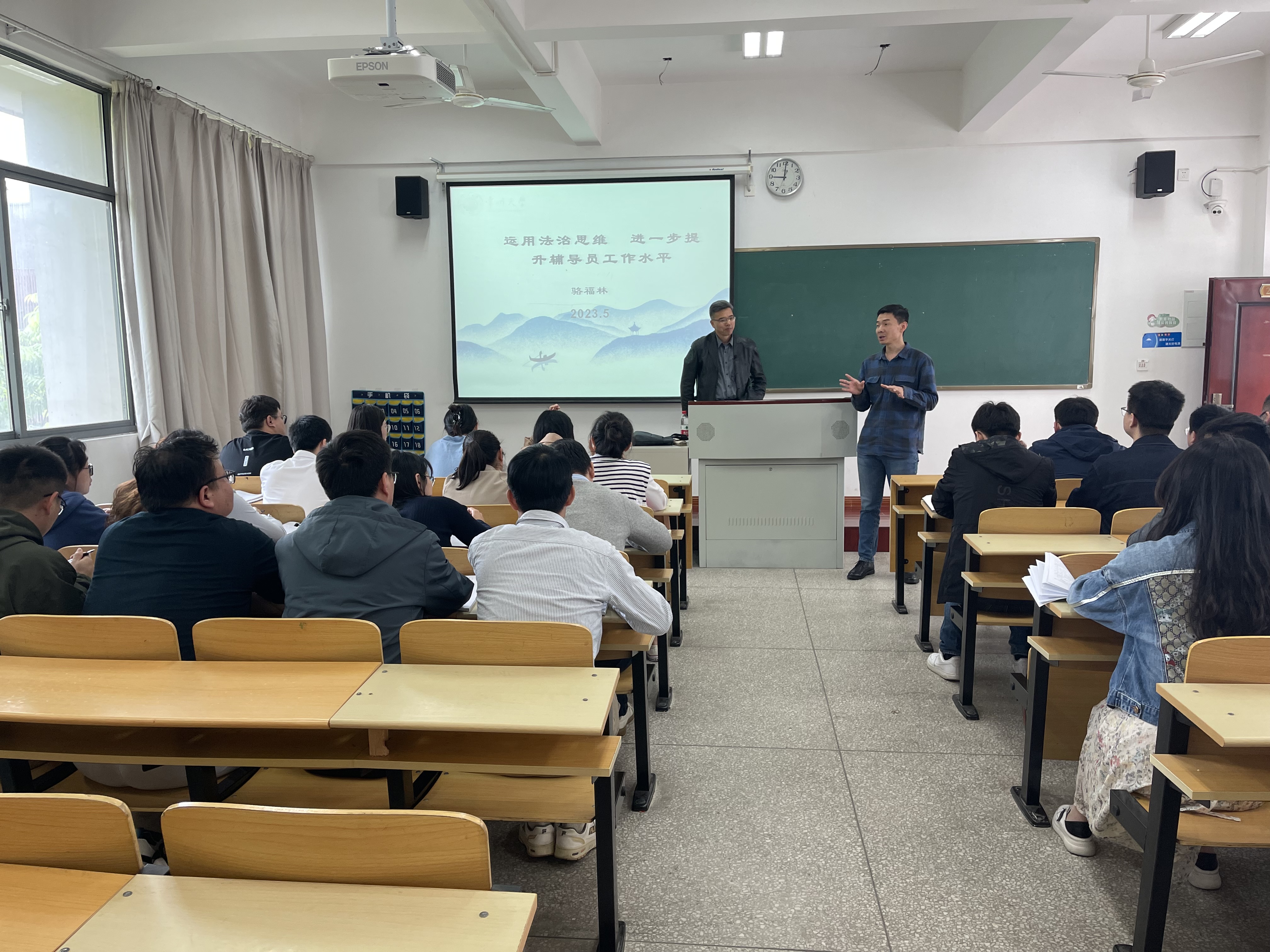 为全面提升辅导员队伍普法工作质效,进一步增强辅导员法治观念,深入培养法治思维,不断提升辅导员工作能力和业务水平。5月12日上午,我院在A203举办了2023年辅导员“大学习”之运用法治思维进一步提升辅导员工作水平专题讲座。本次讲座由常州大学史良法学院副教授骆福林主讲,院党委副书记、副院长刘国仕主持,学生工作处、团委、各系党总支副书记及全体辅导员参加了培训。