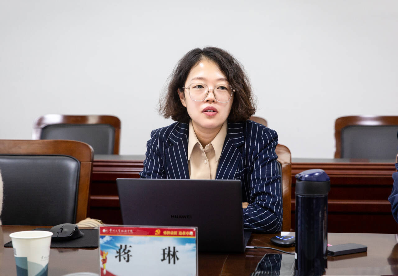 蒋琳从“深入学习理解习近平关于教育的重要论述”、“新时代青年大学生的基本特点”及“青年教师在学生教育管理中的重要作用”三个方面进行了详细的阐述。她指出作为高校老师应该要明确学校人才培养理念,在此前提下了解学生、倾听学生、引领学生,真正做到学生成人成才路上的引路人。