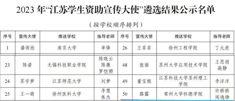 本次“苏乡永助”资助育人主题活动由省教育厅主办,经材料审核、初选、终评等程序,共确定2023年“江苏优秀资助工作者”80名、“江苏学生资助宣传大使”50名。