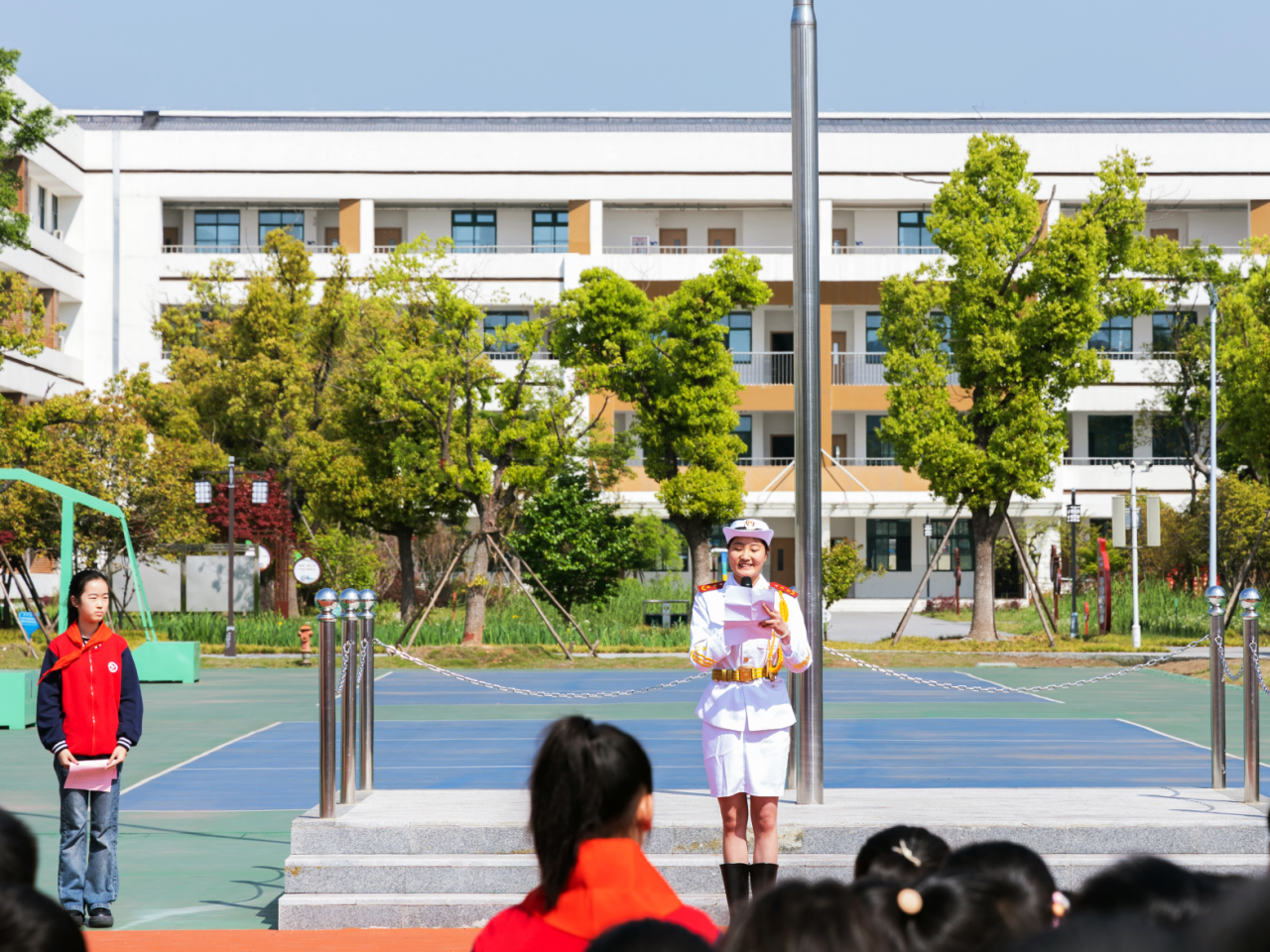 为纪念渡江战役胜利75周年,传承红色基因,汲取奋进力量,4月22日,我院国旗护卫队成员赴靖江市斜桥中心小学,以“弘扬‘东线第一帆’精神,争做合格接班人”为主题,与斜桥中心小学全体师生一起举行了一场别开生面的升旗仪式。斜桥中心小学校长陈红刚做国旗下的讲话,国护学生代表张韩天现场发言。