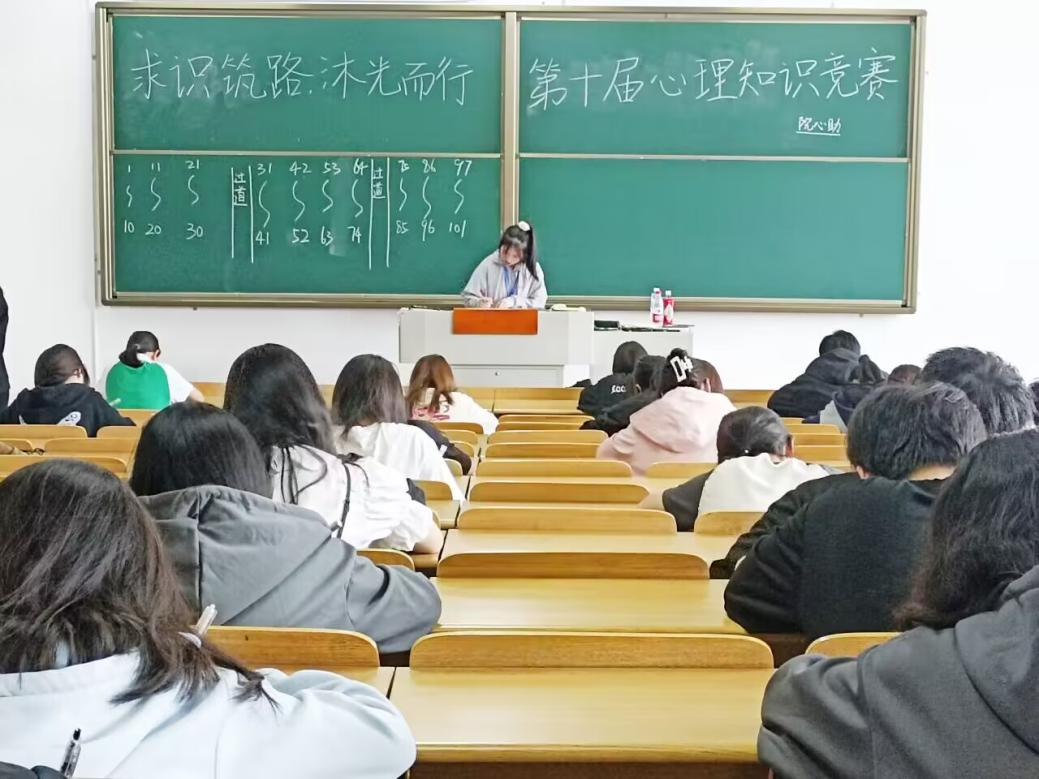 为深入贯彻《省教育厅关于组织开展“五育润心 沐光同行”心理健康教育活动的通知》文件精神,丰富同学们的心理知识储备,4月27日下午,院心理自助中心于J101举办了“求识筑路,沐光而行”心理知识竞赛,八十余名同学参赛。
