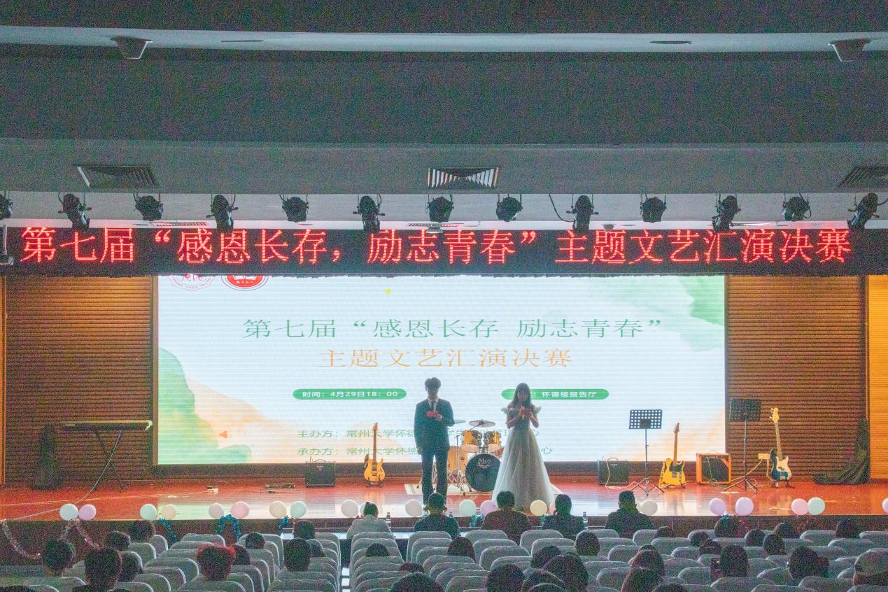 为全面落实贯彻发展型资助育人目标,教育引导广大青年学生知恩感恩、励志笃行,提升学生的人文素养,促进同学们的身心健康,使资助育人理念更加深入人心。4月29日晚,由常州大学怀德学院学生资助管理中心主办,经济管理系助学管理中心承办的“感恩长存,励志青春”主题文艺汇演总决赛在怀德楼报告厅圆满落幕。经济管理系党总支副书记周翔、院学生资助管理中心许娇娇、信息系资助管理中心负责人钱江潮、外语系资助负责人倪榕蔚、经管系助学管理中心指导老师袁猛担任比赛评委。