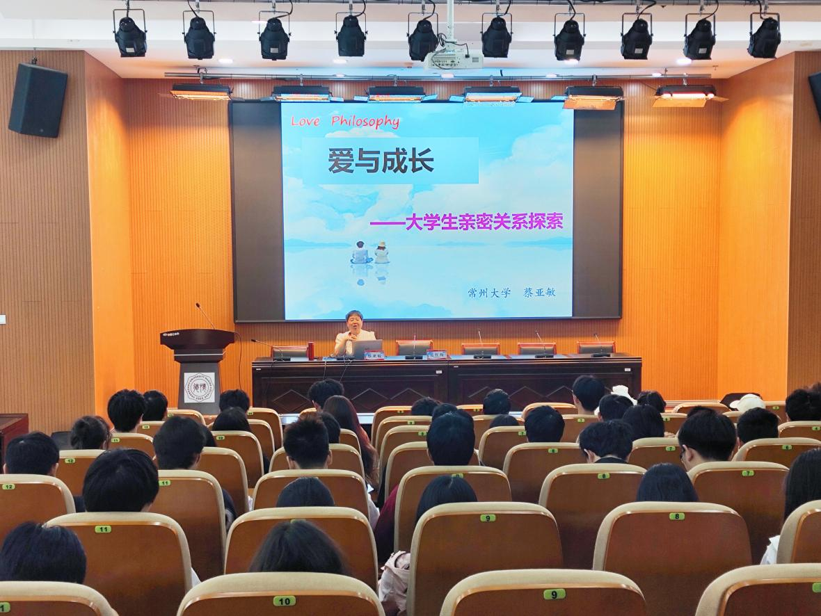 为帮助大学生提高心理素质,增强同学们的情感处理能力。5月17日上午,常州大学心理中心主任、国家二级心理咨询师蔡亚敏应邀于图书馆报告厅开展了“爱与成长”心理健康教育讲座,百余名学生到场聆听。