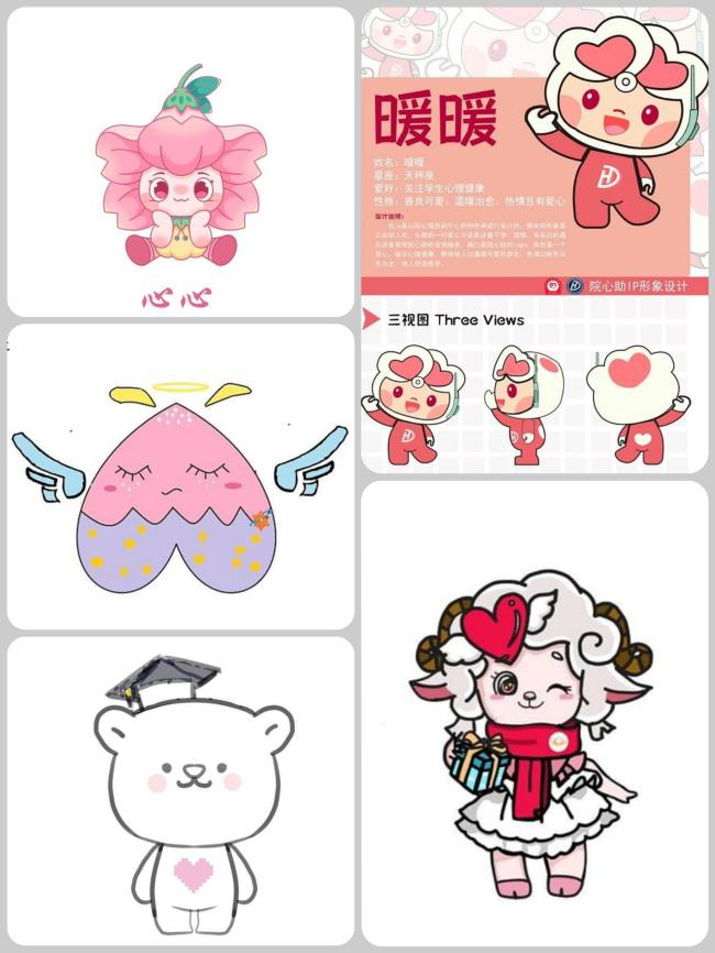 本次活动征集到的设计作品令人眼前一亮,它们基于不同的形象,结合多样化的元素与活泼的色彩充分展现了选手们的思考、想象、创造与艺术素养。作者绘制的形象均具有善良可爱、温暖治愈、勇敢自信、热情且富有爱心等特征,与院心理自助中心的理念相契合,此外,作品中还包含了名称、设计理念、灵感来源等说明,充分诠释了大家对院心助的认同感和美好期盼。