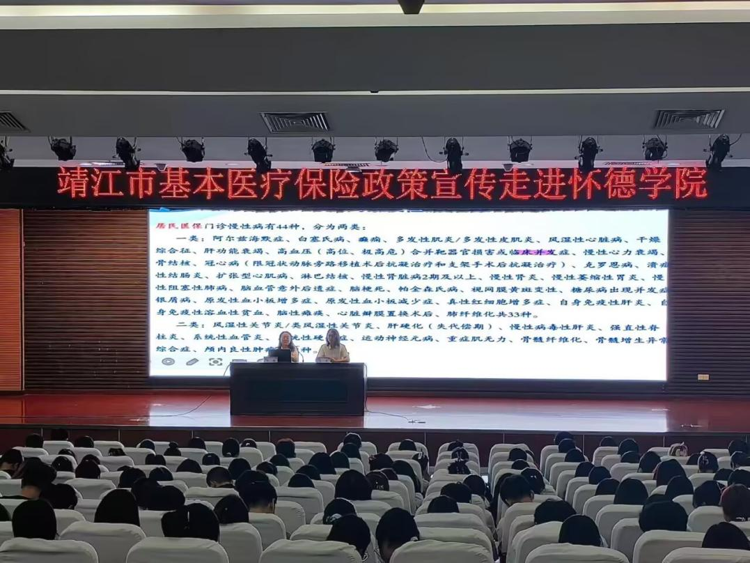 靖江市医保中心基金征缴科黄萍讲师和靖江市医保中心待遇支付和异地就医科刘燕讲师围绕《2025年度靖江市在校学生基本医疗保险费征缴专题培训》和《居民医保政策解读》为我校学生展开了讲座。本次讲座涵盖了保险政策的覆盖范围、报销比例、参保登记流程及待遇享受等方面,并重点介绍就读地参保的优惠政策,鼓励学生参与高校所在地的城乡居民基本医疗保险。