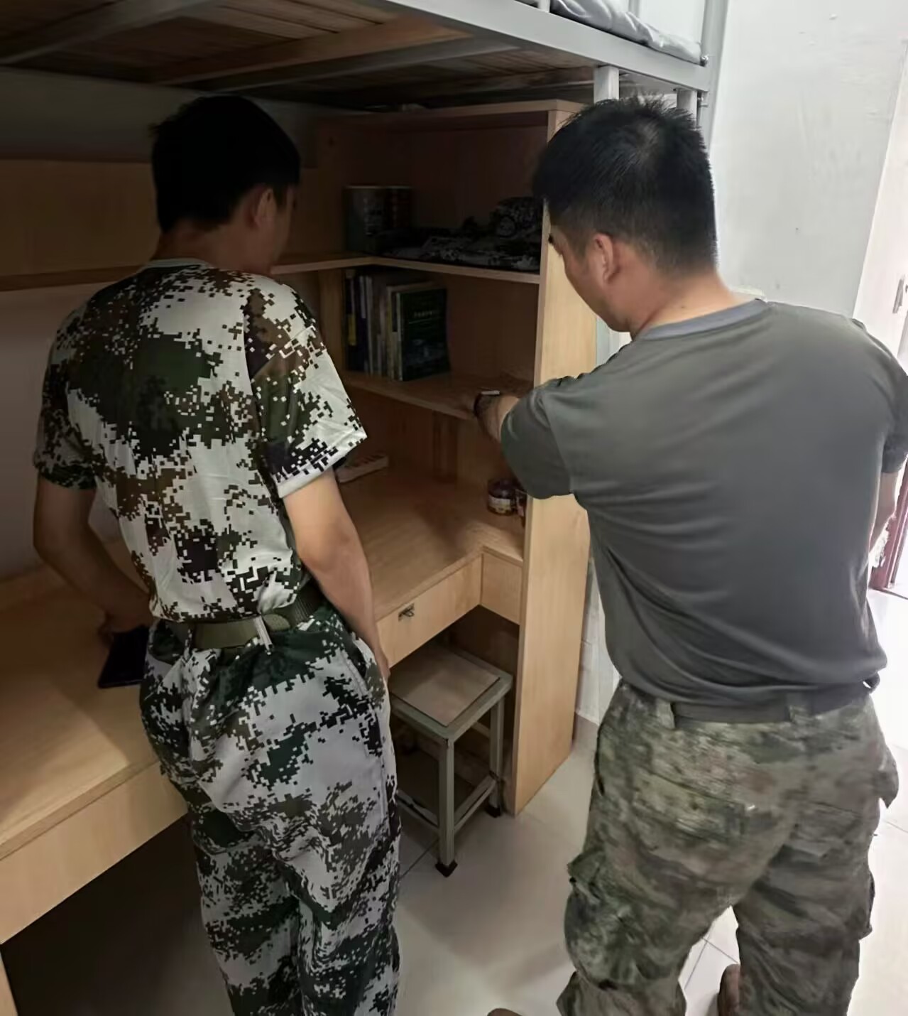 为培养学生的纪律性、组织性和自我管理能力,营造整洁、有序的学习生活环境,9月19日,军训教官们走进学生宿舍,科学指导同学们开展内务整理工作。
