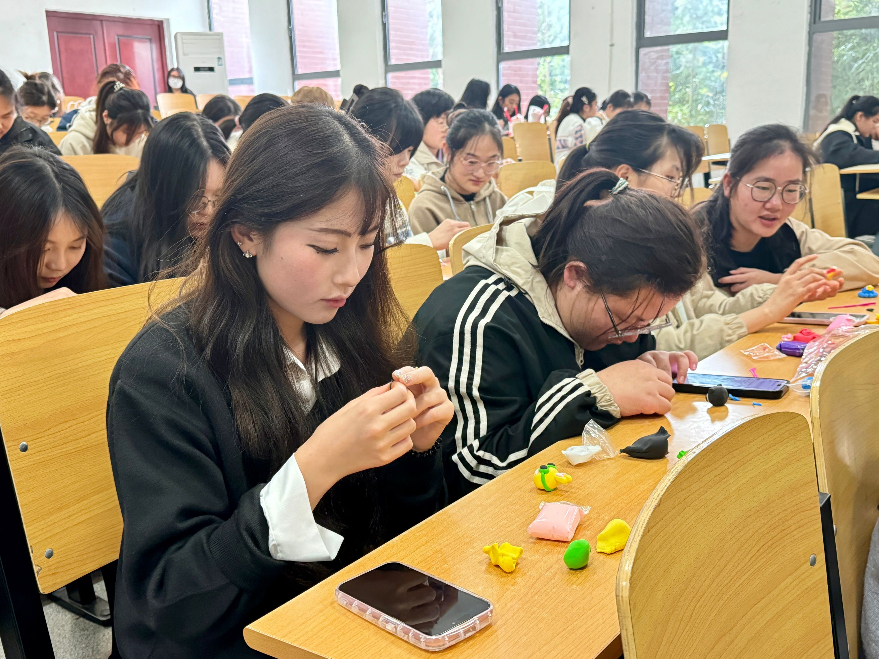 为深入贯彻《省教育厅关于组织开展“五育润心 沐光同行”心理健康教育活动的通知》精神,发挥美育在心理健康教育中的积极作用,丰富学生的课余生活。11月9日下午,院心理自助中心于B楼阶梯教室举办了“以手造物,以物抵心”黏土DIY活动,共计80名同学参与。