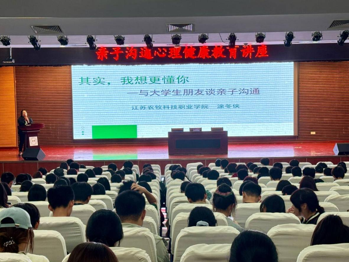 为帮助大学生更好地处理亲子关系,增强同学们的沟通能力。11月14日下午,江苏农牧科技职业学院心理专职教师、国家二级心理咨询师涂冬侠应邀于怀德楼报告厅开展了题为“其实,我想更懂你——与大学生朋友谈亲子沟通”的心理健康教育讲座,近五百名同学到场参加了讲座。