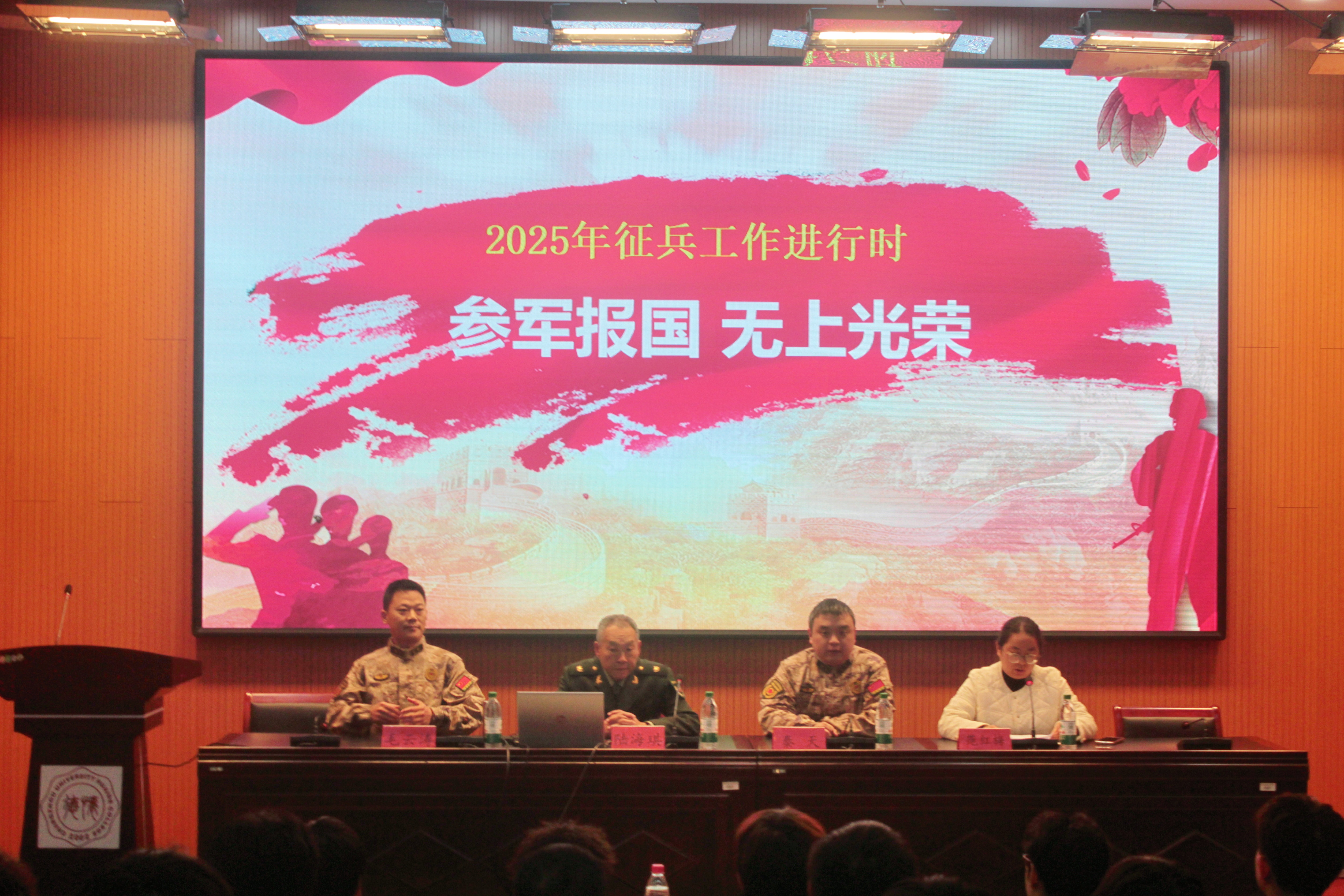 为积极响应国家号召,激发青年学子应征入伍的热情,12月3日,院人武部组织召开2025年春季征兵宣讲会。靖江市人武部参谋陆海琪、斜桥镇人武部部长秦天、副部长毛云涛应邀参会,院人武部副部长范红梅主持会议。