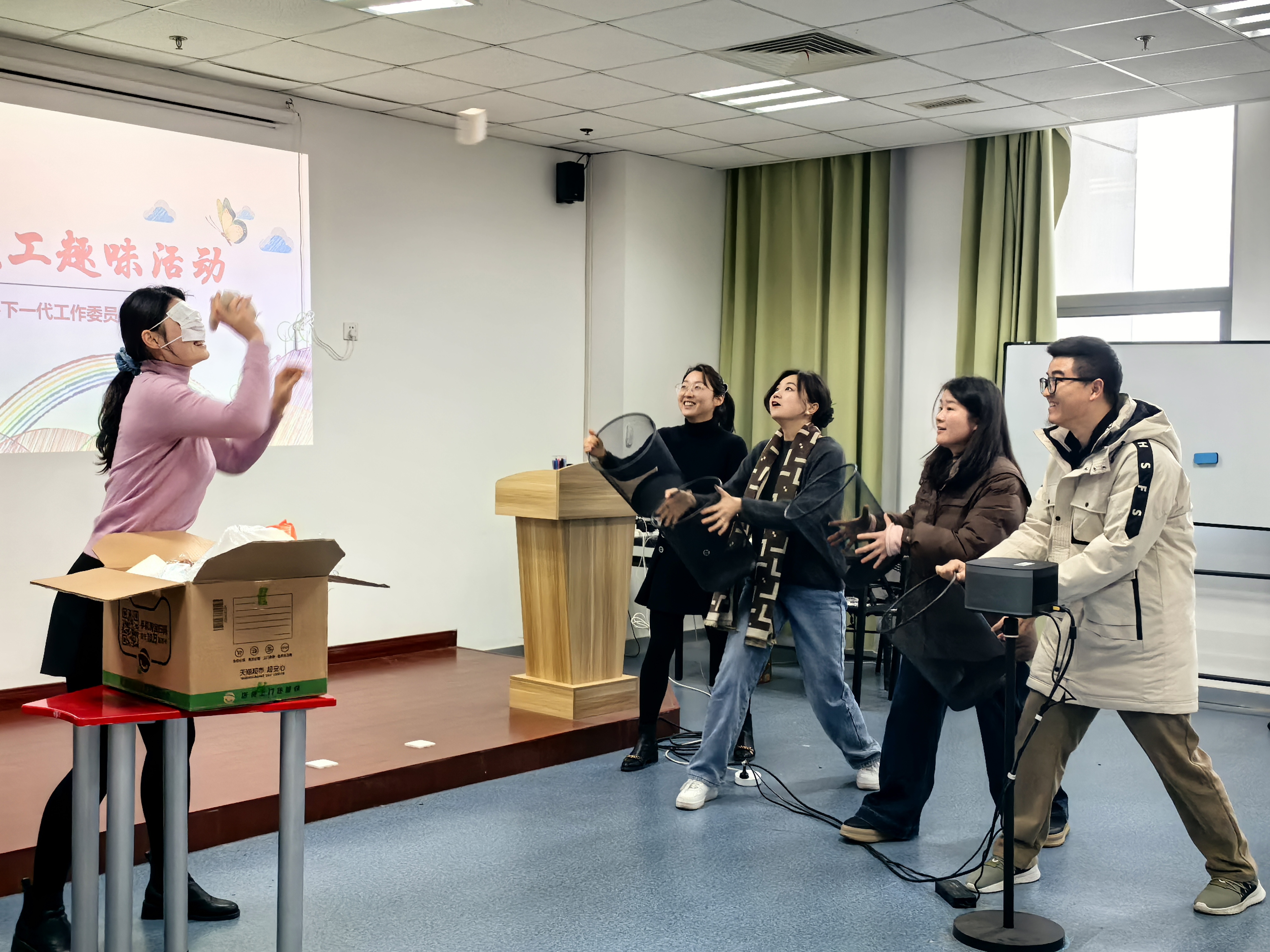 为增强青年教工的交流与合作,提升团队凝聚力,12月19日,关工委组织开展青年教工趣味活动,院关工委常务副主任蒋美萍作为退休老教师代表与各部门青年教工现场同乐。
