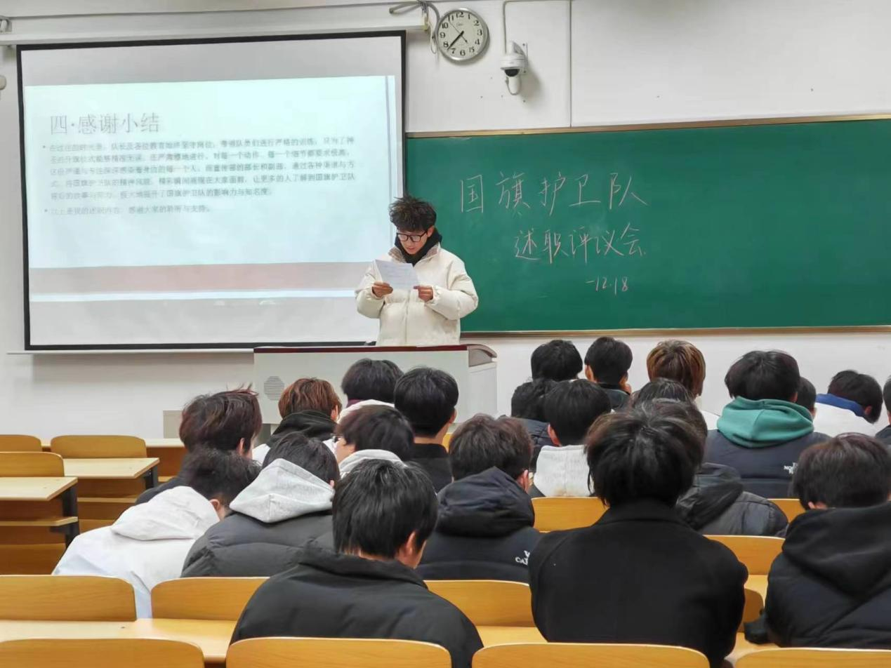 为总结回顾工作,展望规划未来,12月18日晚,国旗护卫队组织开展了年终述职报告暨民主评议会,第六届国旗护卫队全体成员参会。