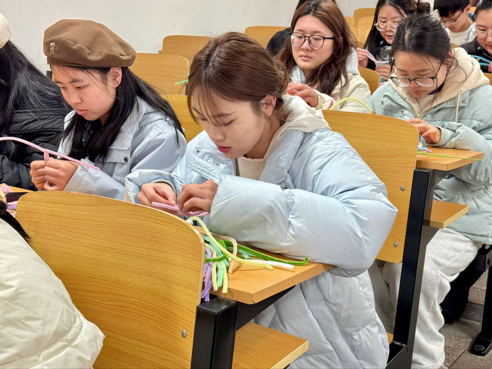 为贯彻落实《省教育厅关于2025年春季学期大学生心理健康教育工作重点任务清单》文件精神,丰富校园文化生活,提升学生心理健康水平。3月8日下午,院心理自助中于A楼阶梯教室开展了“巧手造趣,润心美育”扭扭棒创意活动,百余名学子积极参与。