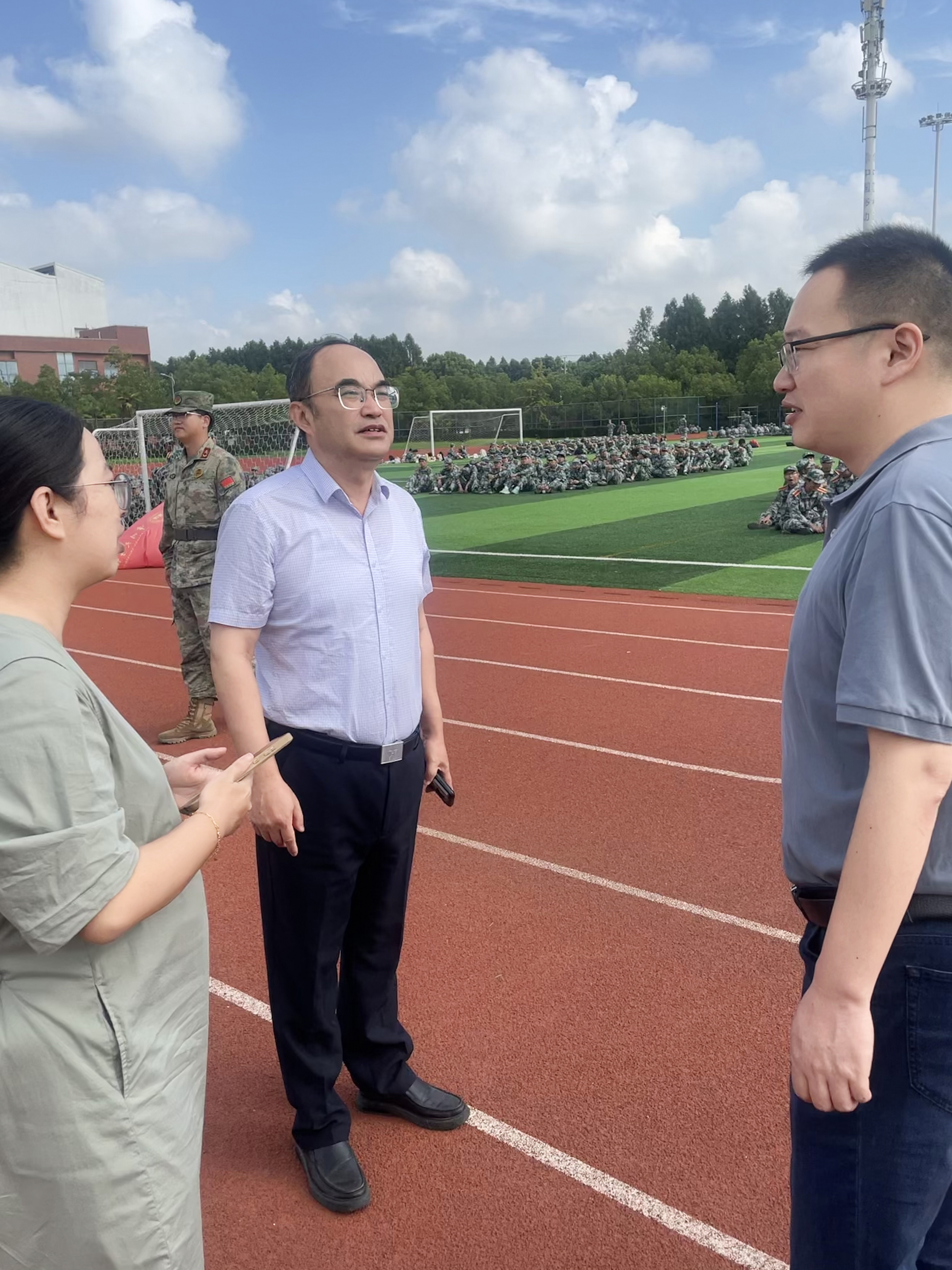 9月23日上午,院党委书记李伟明、副院长黄凯,在人武部负责同志陪同下,深入军训现场,看望正在进行军事训练的2025级大一新生和承训教官。