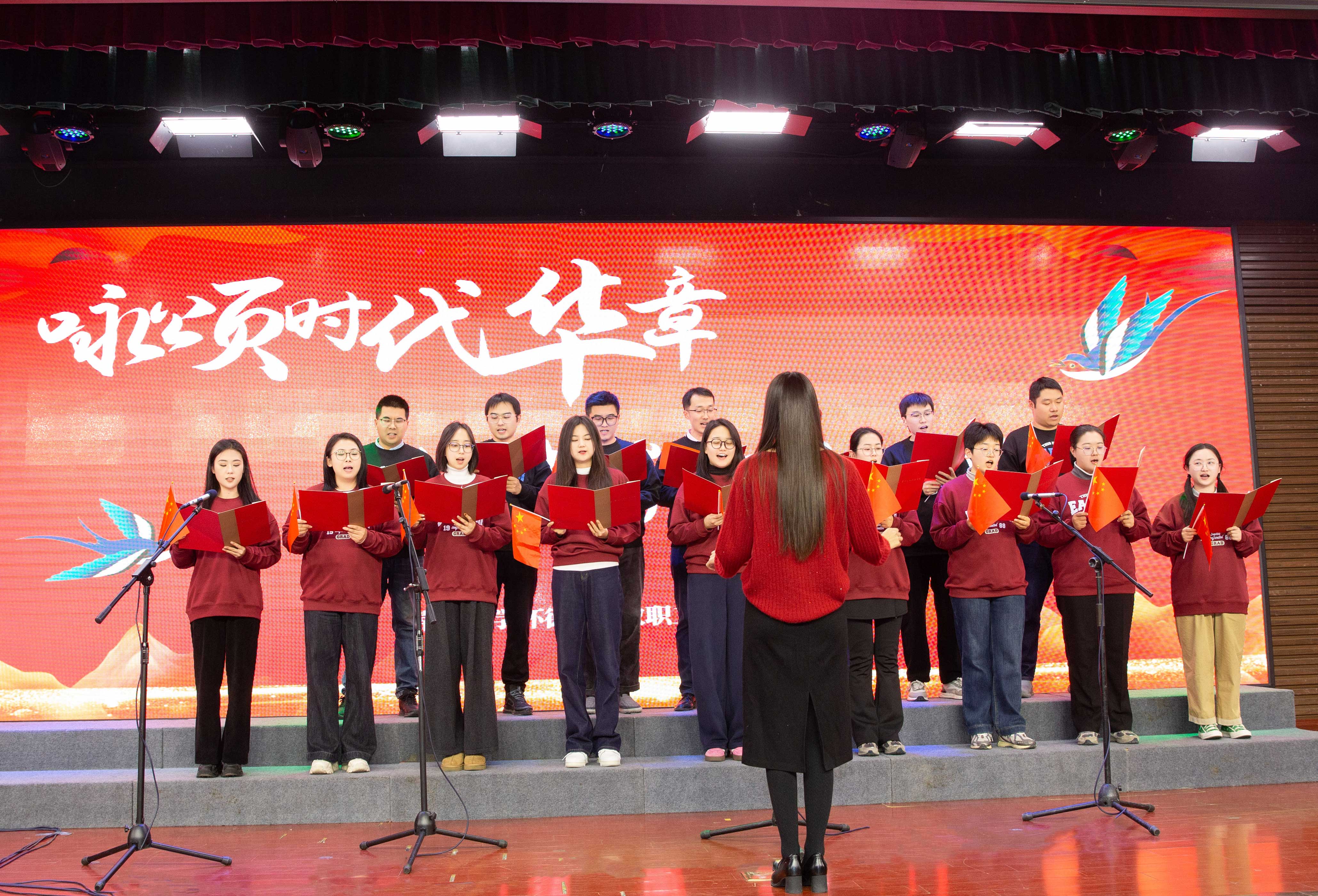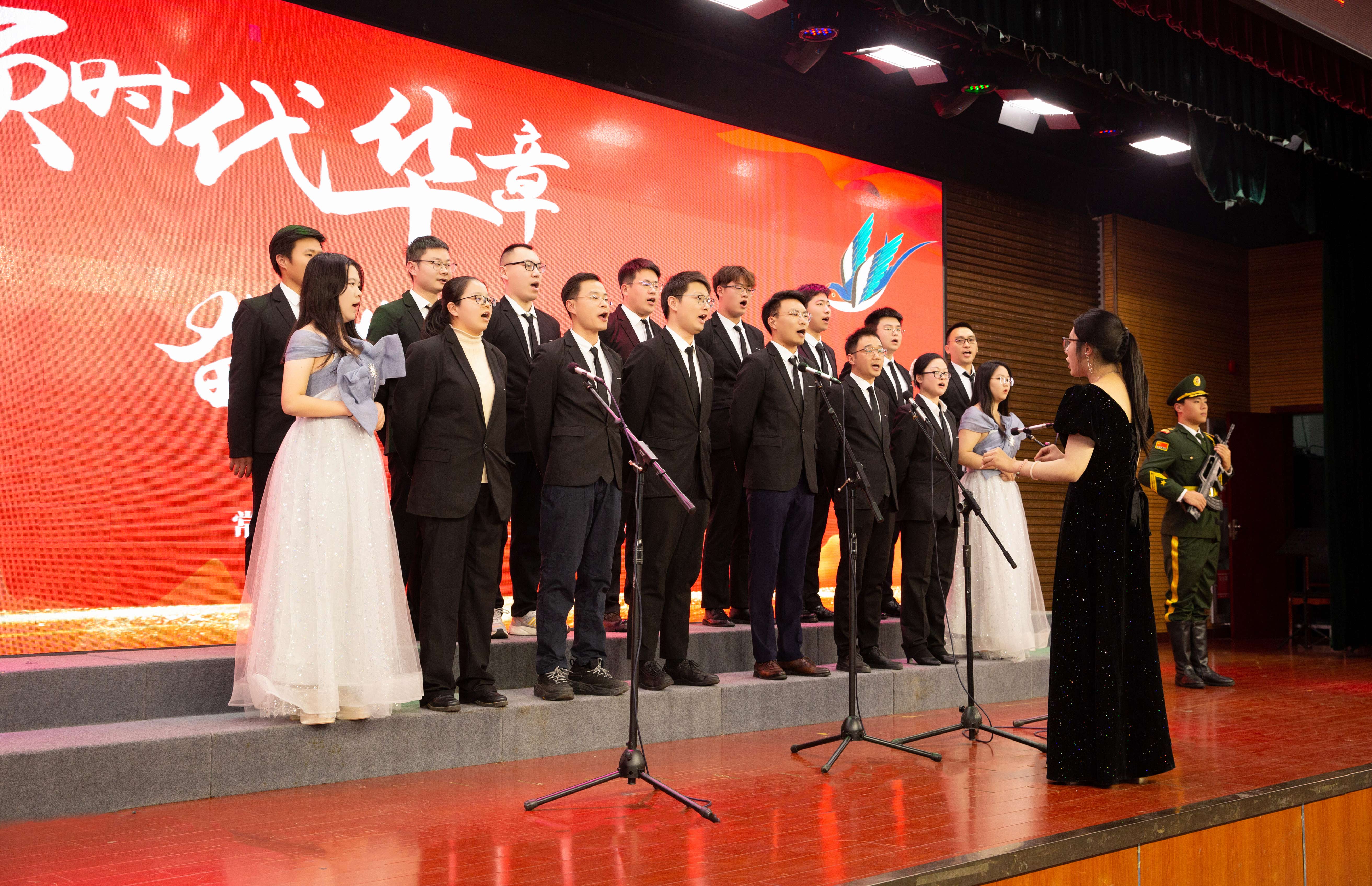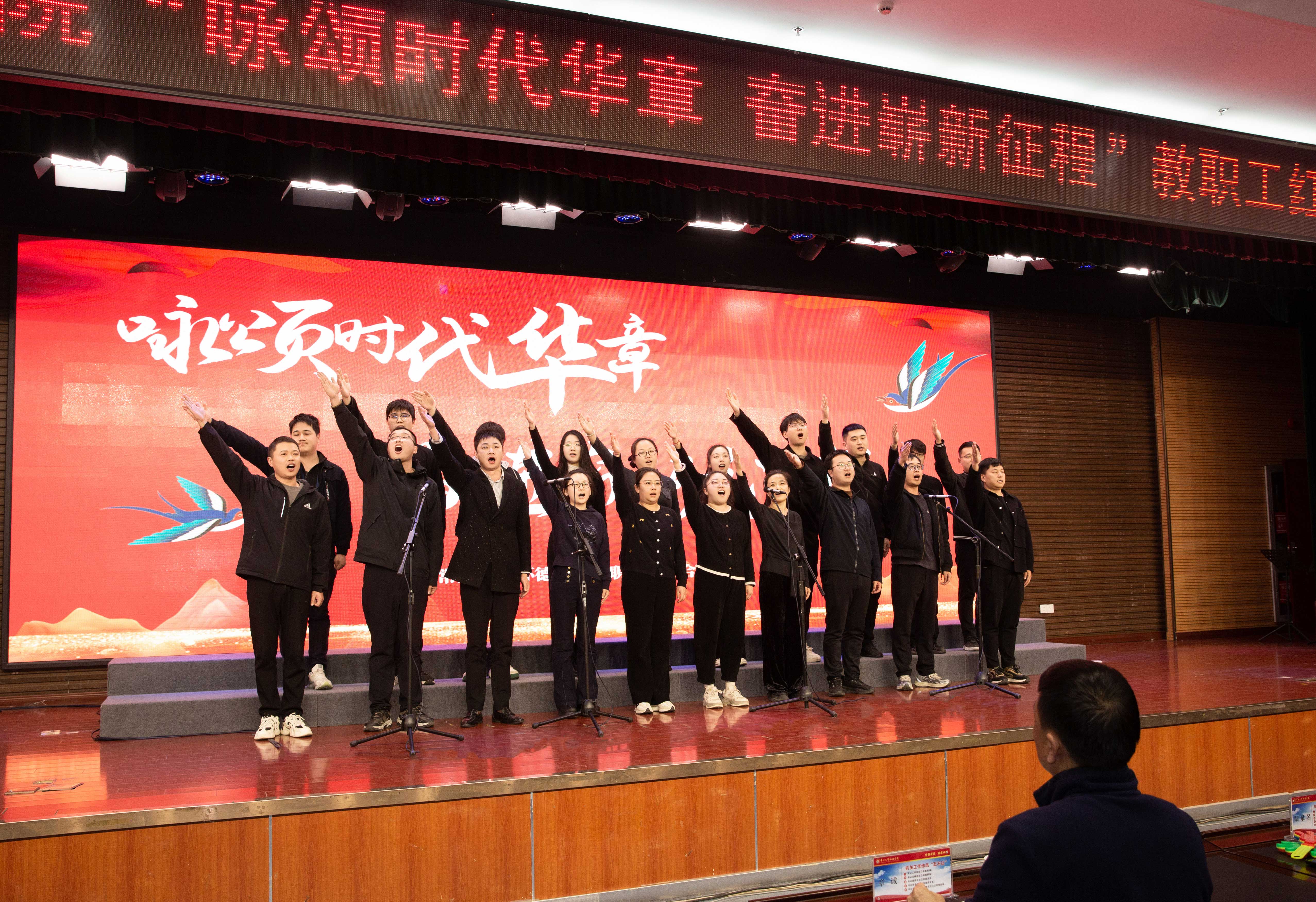 《没有共产党就没有新中国》的铿锵旋律,唱出了全体教职工坚定跟党走的如磐信念;《团结就是力量》的慷慨激昂,抒发了人民群众为创建新中国而团结战斗的坚强意志;《灯火里的中国》以温婉而深情的音调,展现了新时代中国的安宁祥和与璀璨未来……一首首耳熟能详的经典曲目,或激昂澎湃,或悠扬婉转,为现场观众带来了一场听觉盛宴。