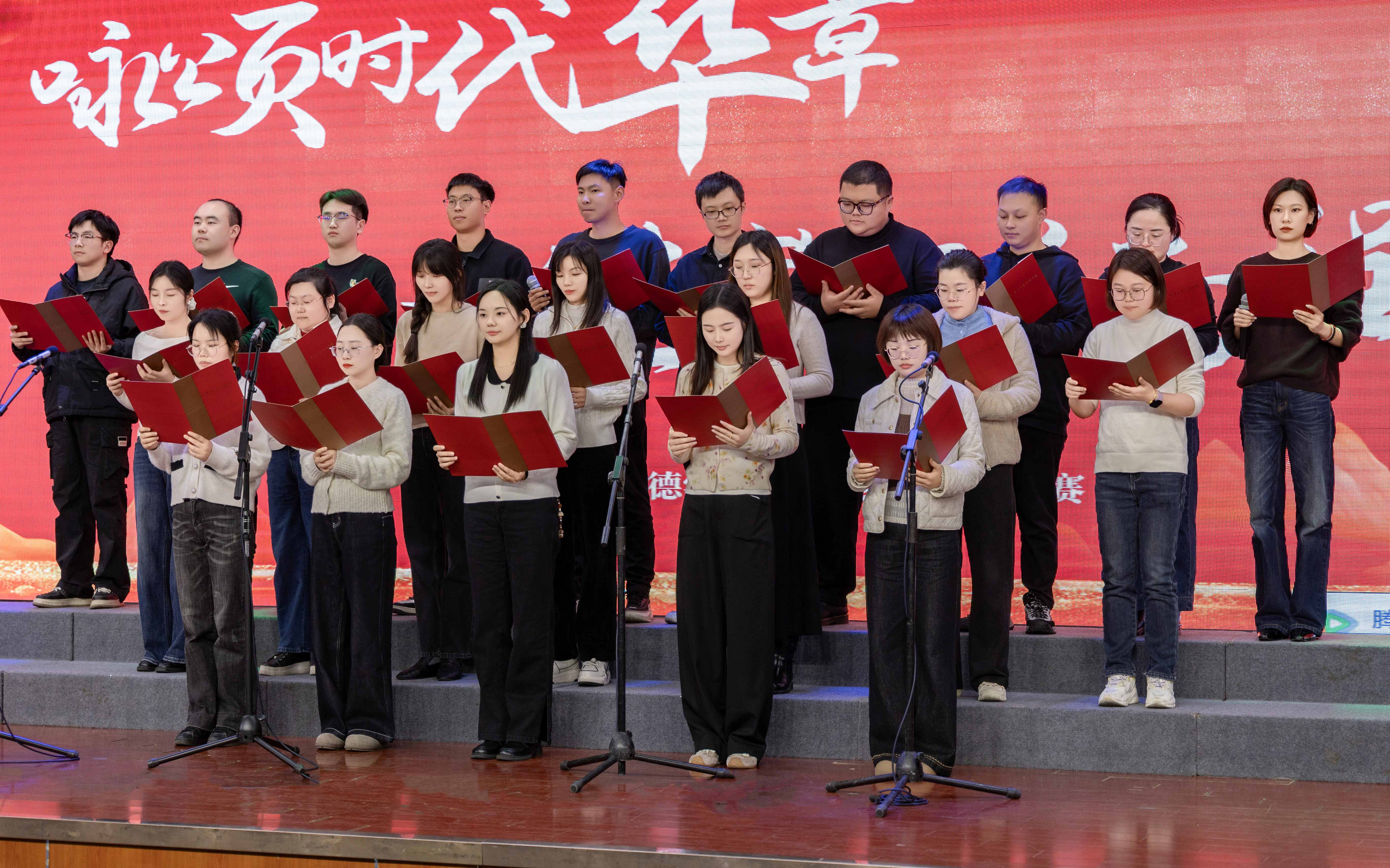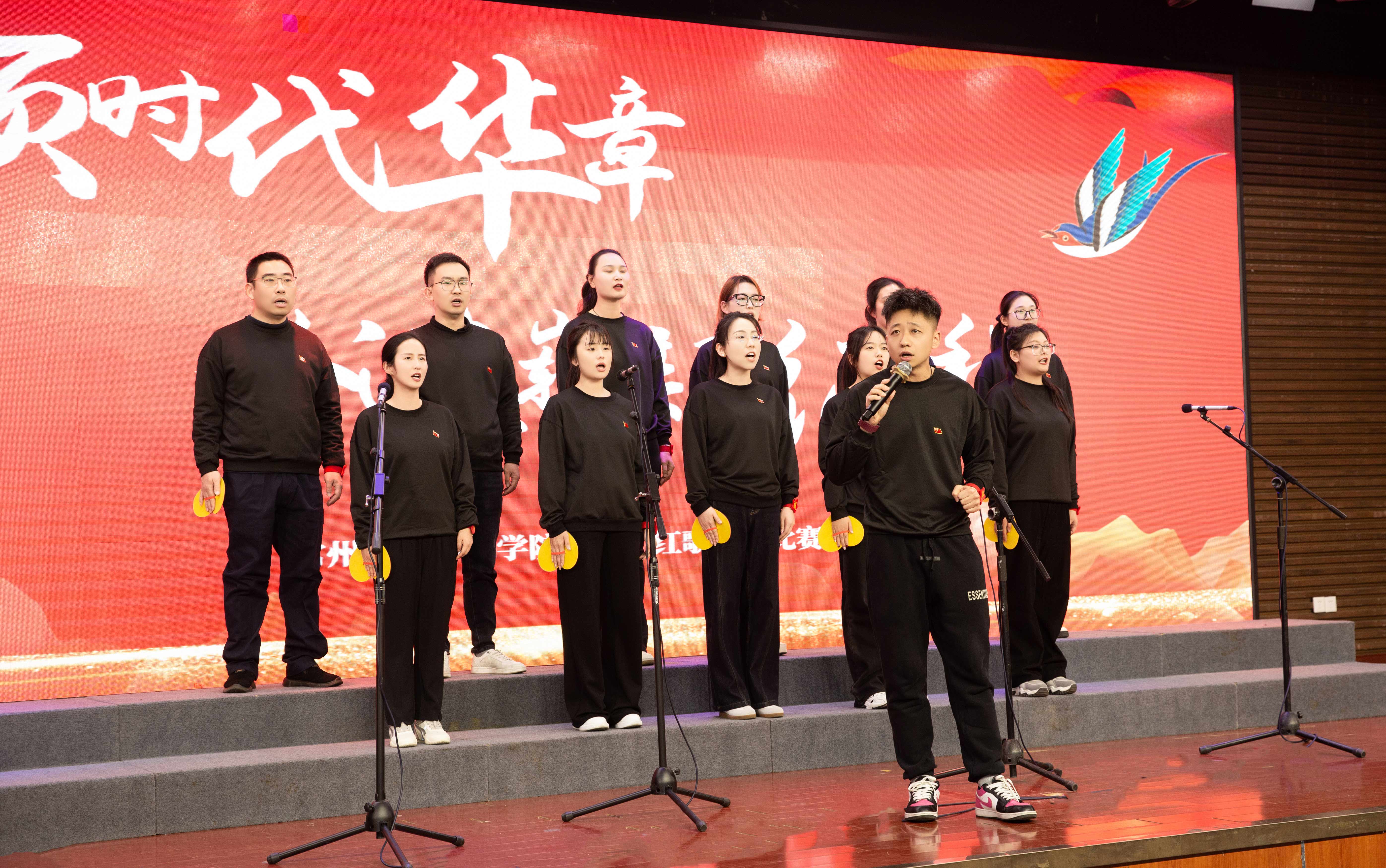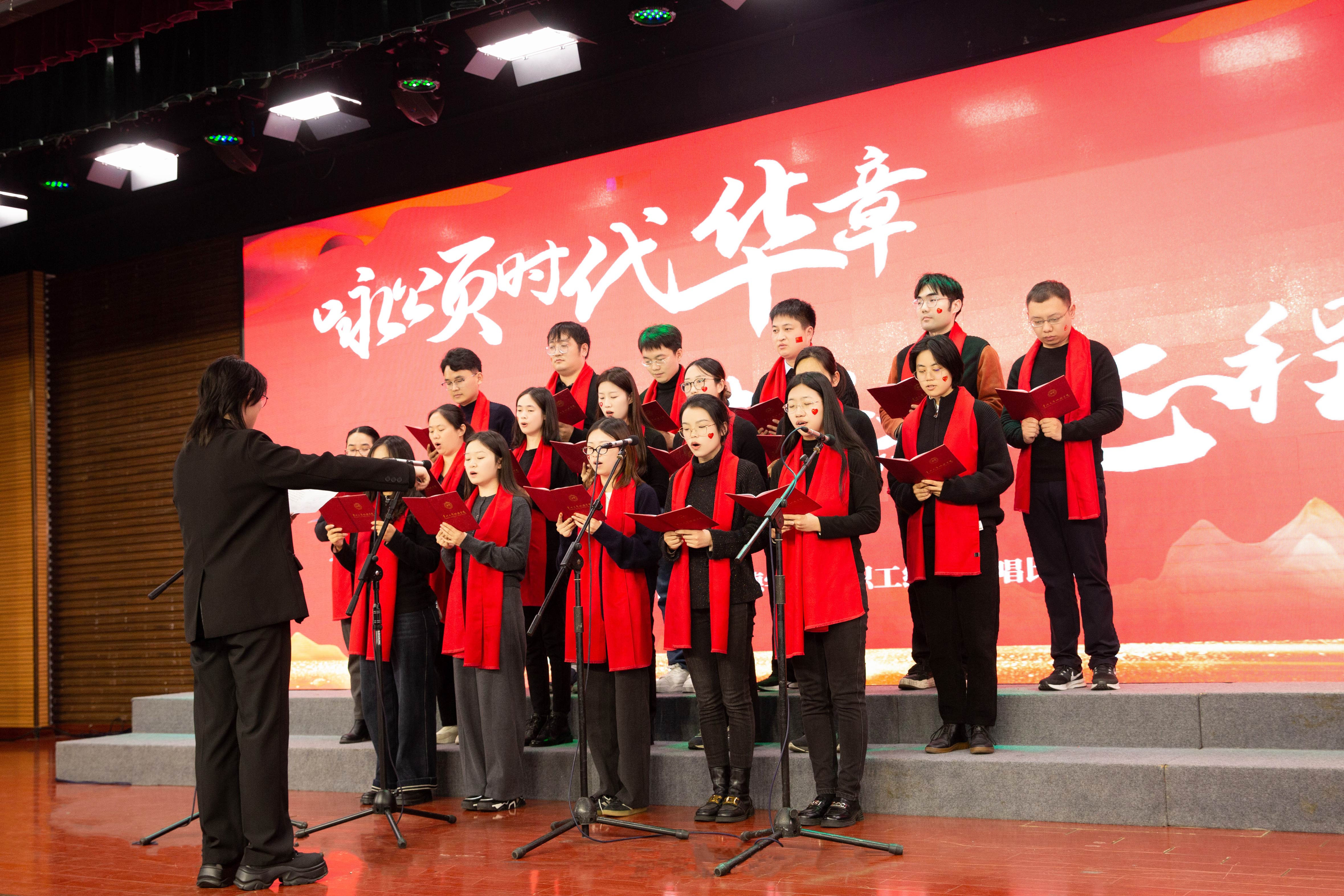 本次比赛共有来自全院各单位12支代表队登台献唱。比赛现场,灯光璀璨,气氛热烈。各参赛队伍精神饱满,用嘹亮的歌声和深情的演绎,将一首首镌刻着时代印记、承载着人民心声的经典红歌,化作对党、对祖国、对人民的无限热爱与忠诚赞歌。