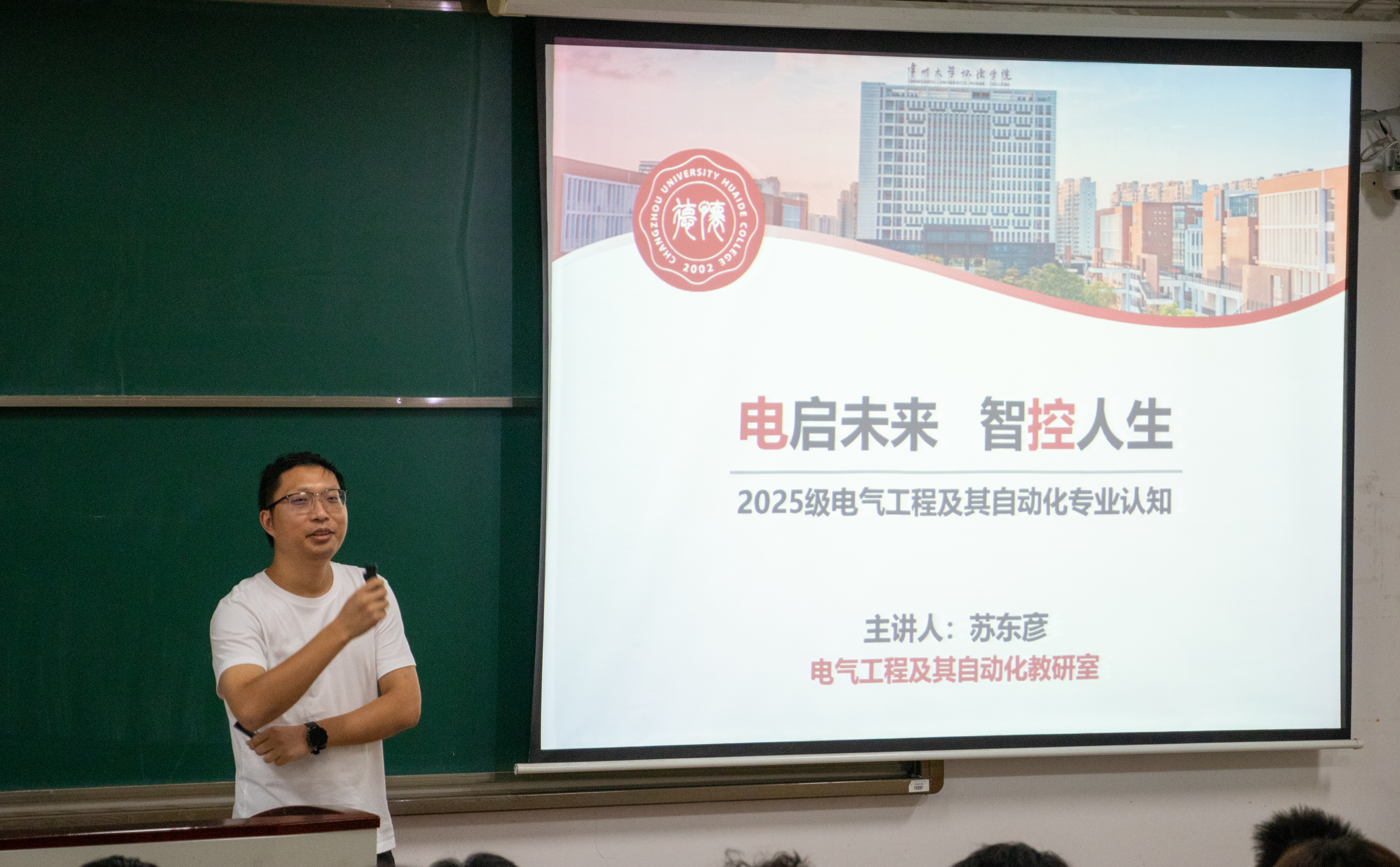 苏东彦老师从多维度出发,系统剖析了当前电气工程领域所面临的挑战与机遇,并结合生动具体的PPT案例,将抽象的专业知识直观呈现,让新生对电气工程的专业特色与发展前景有了更加清晰的认识。此外,他还建议同学们科学规划大学生活,注重全面发展,不断提升个人综合素质,为未来职业发展打下坚实基础。吴多老师则结合往届学生的成长经历,鼓励新生合理规划时间、积极参与社会实践,为大家提供了切实可行的建议与方向引导。