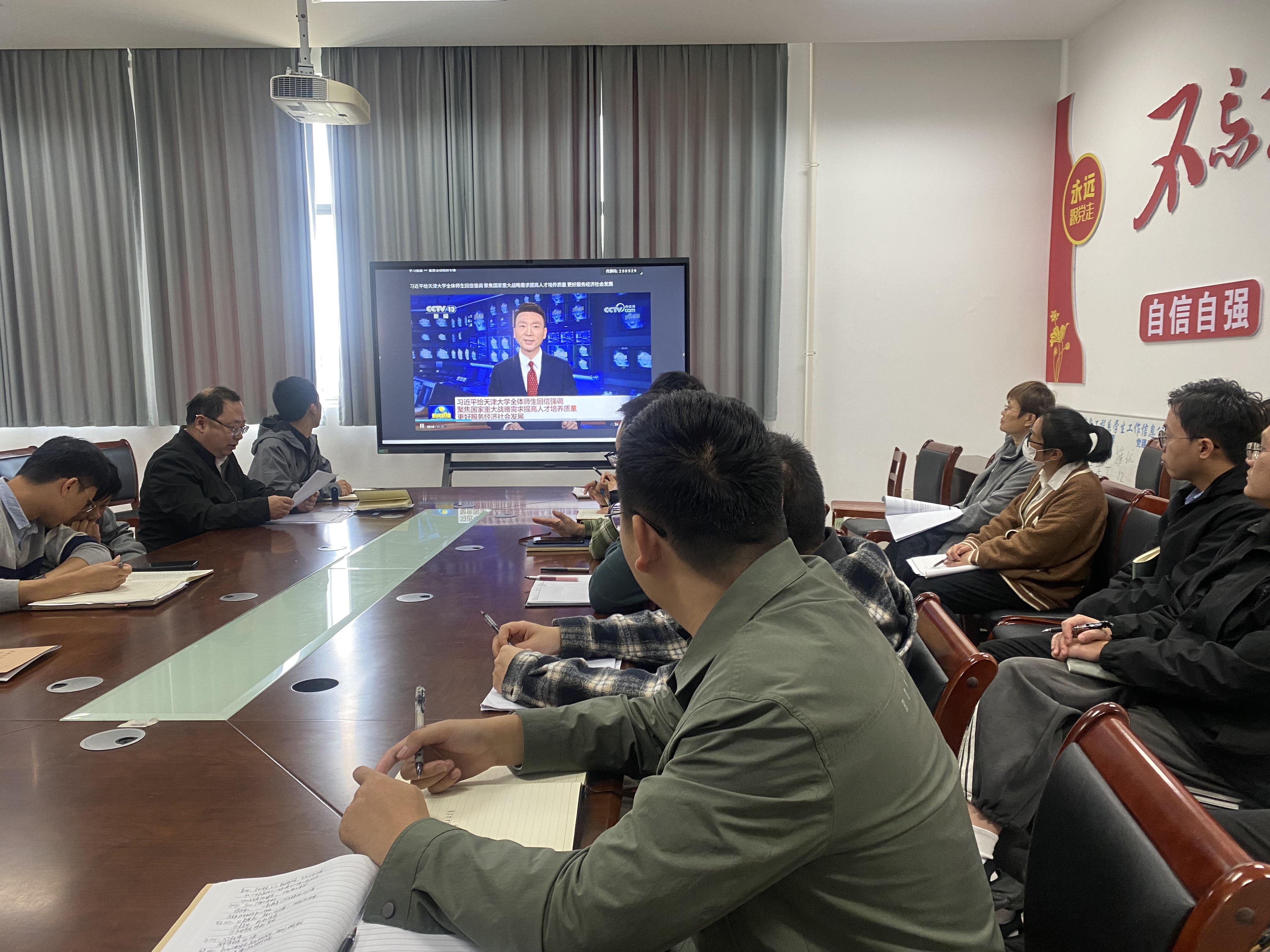 会上,传达了习近平给天津大学全体师生回信(全文),观看了央视新闻《习近平给天津大学全体师生回信强调聚焦国家重大战略需求提高人才培养质量更好服务经济社会发展》。姜巍指出习近平总书记的回信精神是对全体高校教师的殷殷期许,为新时代高校教师指明了发展方向;要求全系教师,结合岗位工作,铭记“为党育人、为国育才”的使命,深入开展产教融合、教学改革,紧紧围绕立德树人根本任务,培养更多服务于国家经济社会发展的人才。