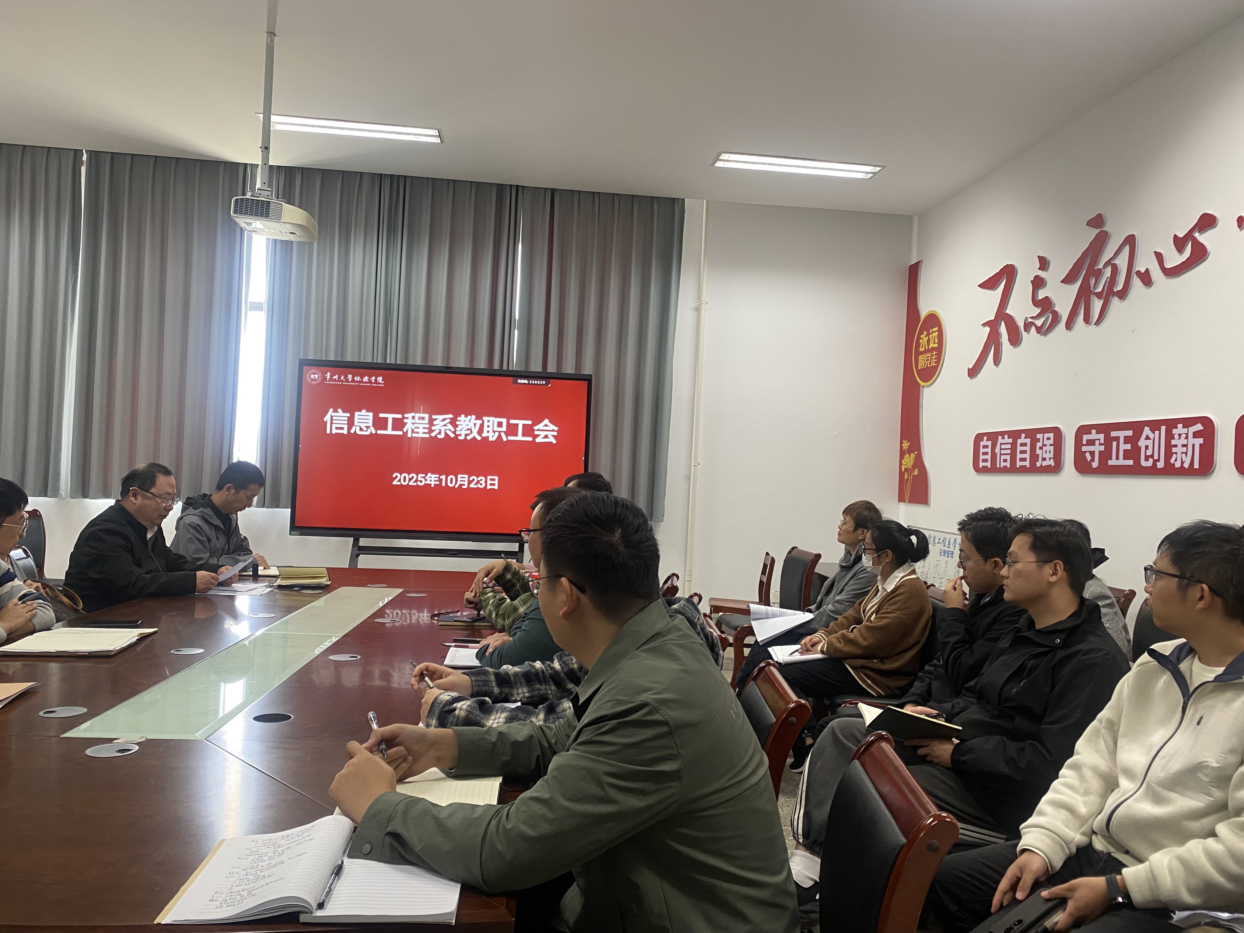 10月23日下午,信息工程系召开教职工会议,组织学习习近平总书记给天津大学全体师生回信精神,全体教职工参加,系党总支书记姜巍主持会议。
