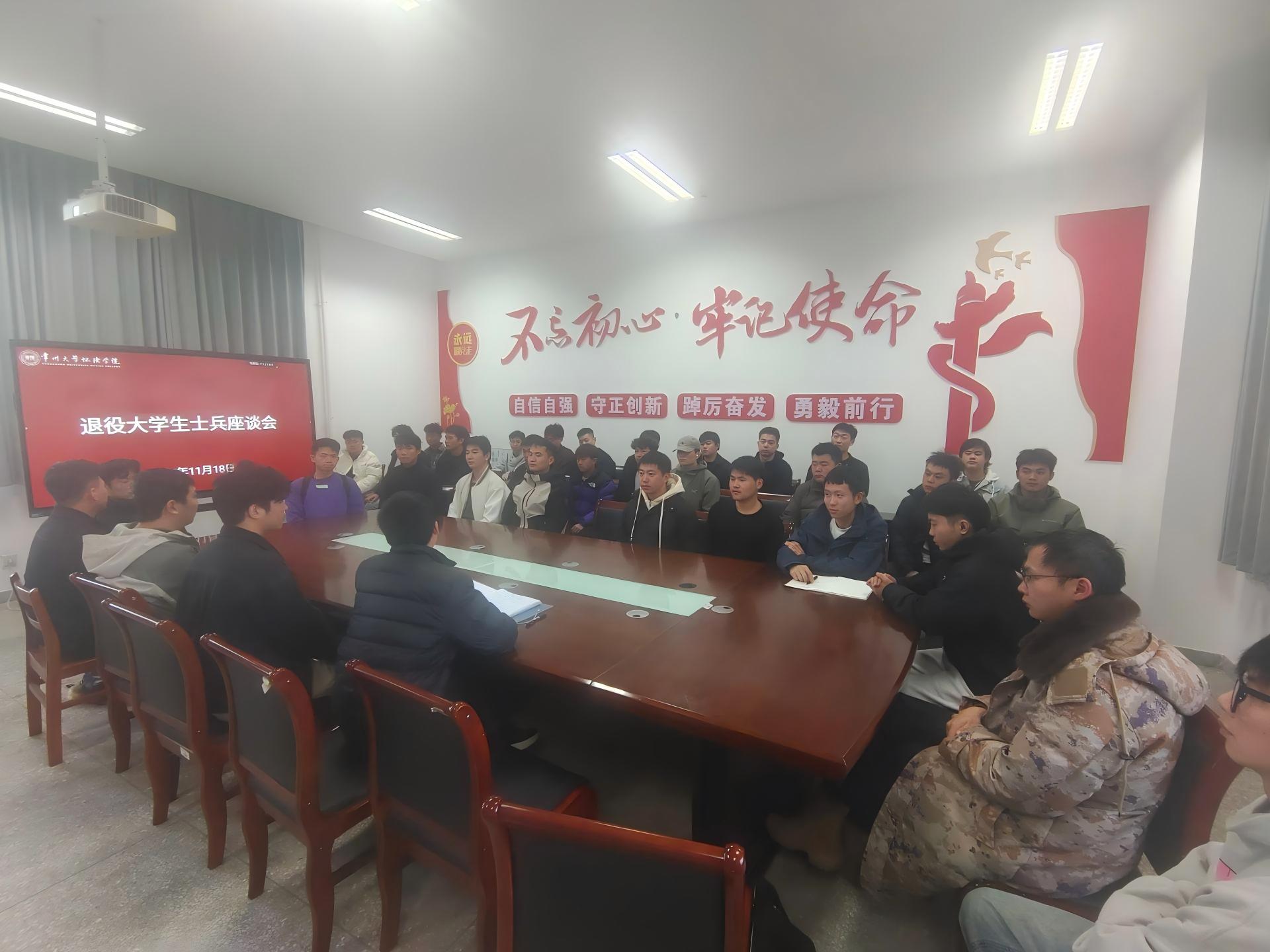 座谈会上,金超对退役士兵学生秉持军人优良作风、积极投身校园生活表示肯定,详细了解他们在学业适应、专业学习、职业规划等方面的困惑与诉求。退役士兵学生们踊跃发言,分享军旅生涯的收获与感悟,围绕课程学习、实践锻炼、就业方向等话题交流想法。