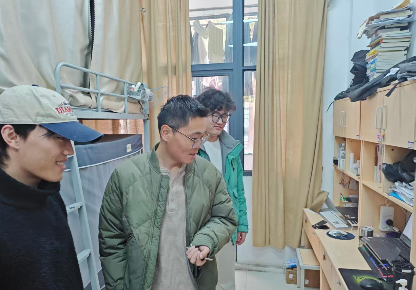 此外,辅导员们还结合近期校园安全案例,向学生普及用电安全知识,提醒大家规范使用电器、定期检查宿舍电路,引导学生树立 “安全第一” 的意识,共同营造安全、有序的住宿环境。此次走访不仅及时消除了潜在安全隐患,更通过 “面对面” 沟通强化了学生的安全防范意识,为校园安全稳定奠定坚实基础。(通讯员/王东宇 审核/金超)