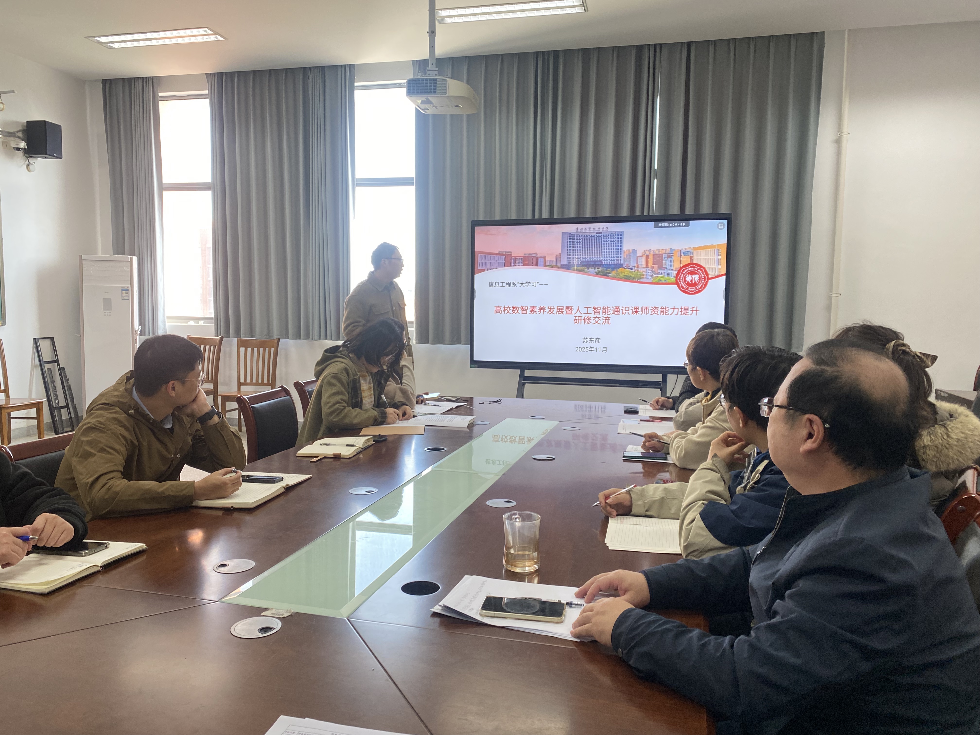 11月26日,信息工程系党总支在C413会议室开展大学习活动,苏东彦老师以《高校数智素养发展暨人工智能通识课师资能力提升研修交流》为题进行了学习交流。